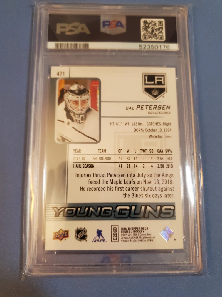 134LA KINGS Goalie Cal Petersen rookie card graded psa 10