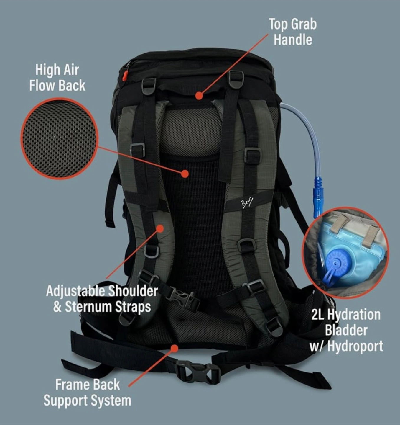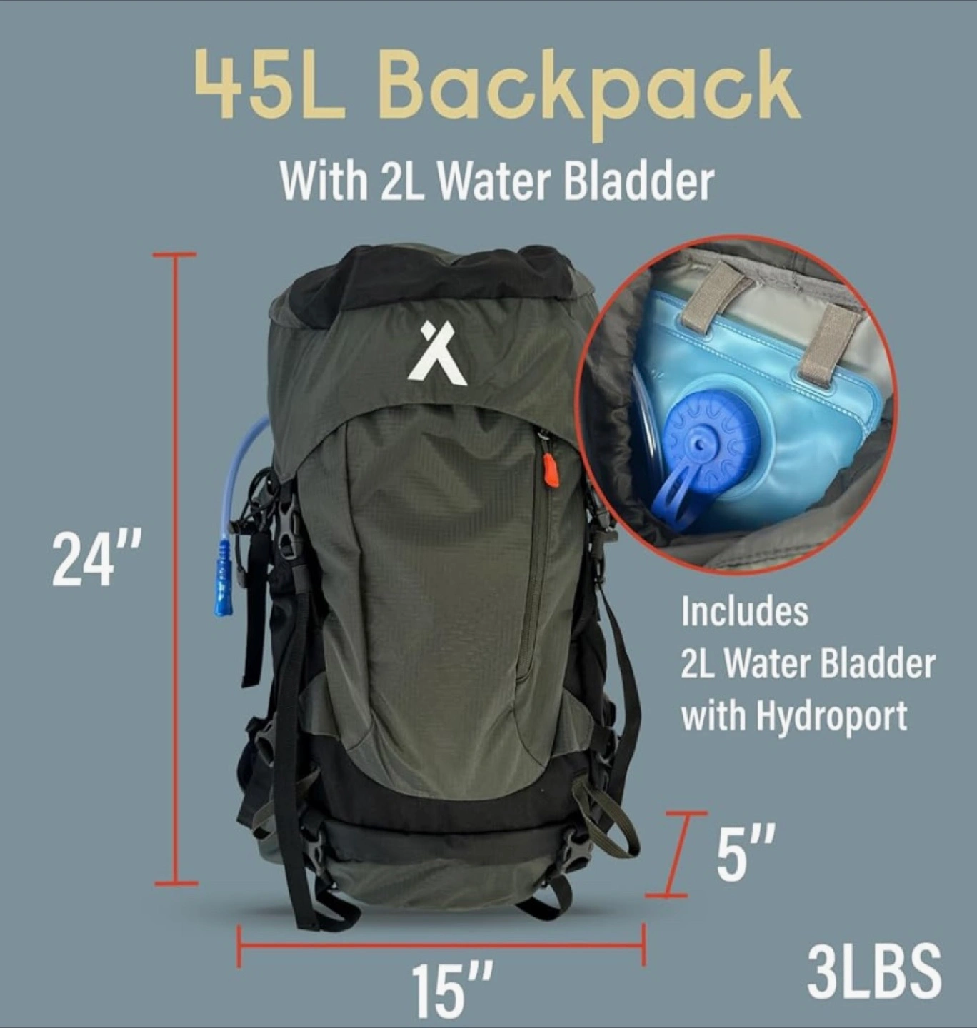 IN THE BOX: Bear Grylls 45L Hiking Backpack with 2L Hydration Pack