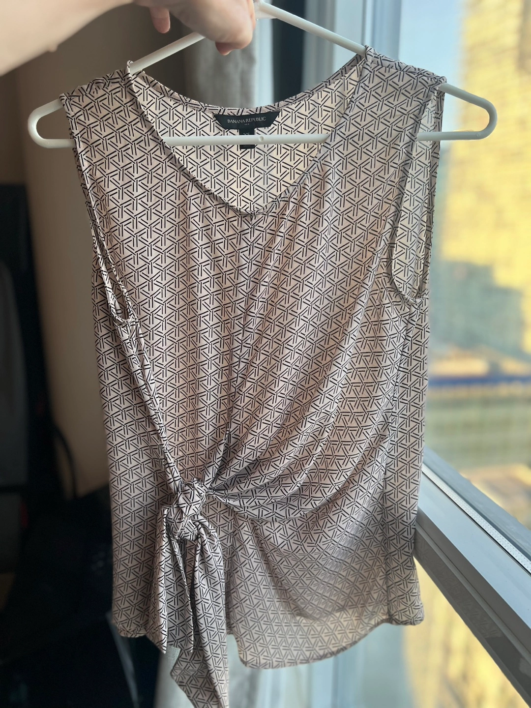 Banana Republic. Color blush with black pattern. A knot can be tied in the front- size XS- barely worn in like new condition.
