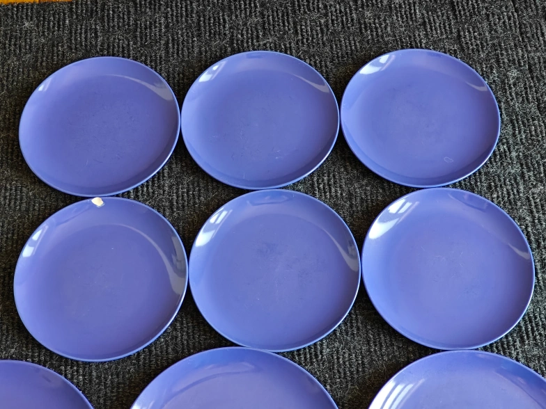 I am selling a Set of 9 Modern Blue Dinner & Salad Kitchen Plates in used, good condition. Brighten your dining experience with this lovely set of 9 modern blue plates. The minimalist design and vibrant blue color make them versatile for everyday use or for adding a pop of color to your table settings.