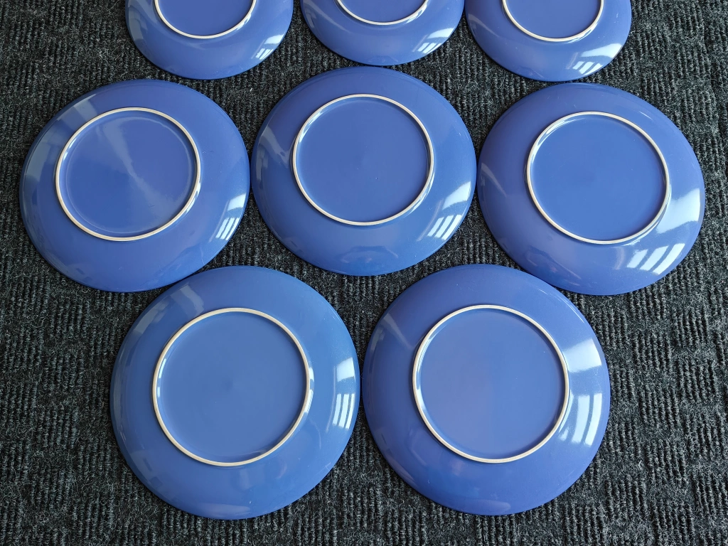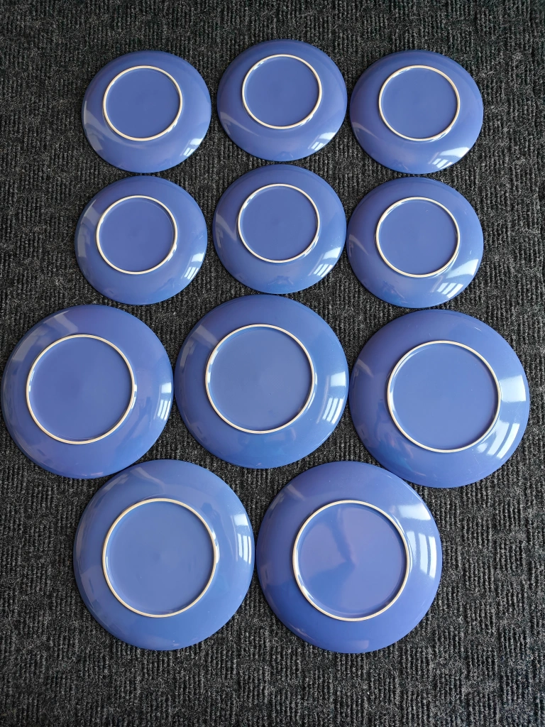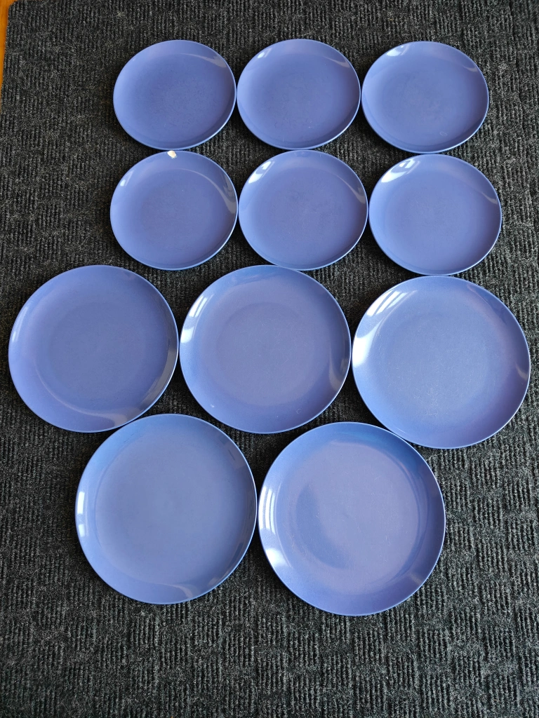 I am selling a Set of 9 Modern Blue Dinner & Salad Kitchen Plates in used, good condition. Brighten your dining experience with this lovely set of 9 modern blue plates. The minimalist design and vibrant blue color make them versatile for everyday use or for adding a pop of color to your table settings.