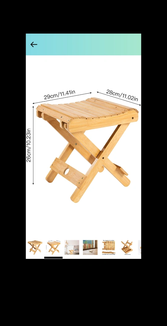 This bamboo folding stool is perfect for indoor or outdoor use! It's lightweight and easy to store, making it a great addition to any home or camping trip. The dimensions are approximately 29cm x 28cm x 26cm.