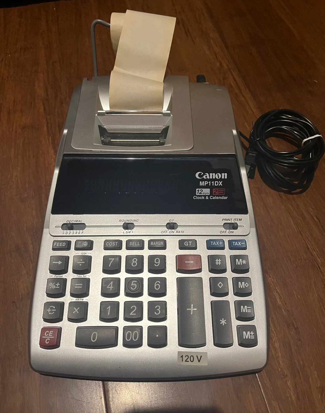 Canon MP11DX 12 Digit 2 Color Printing Calculator Adding Machine. This is a versatile tool for any office or business setting. With a 12-digit 2-color printing capability, it allows for easy and clear display of calculations.