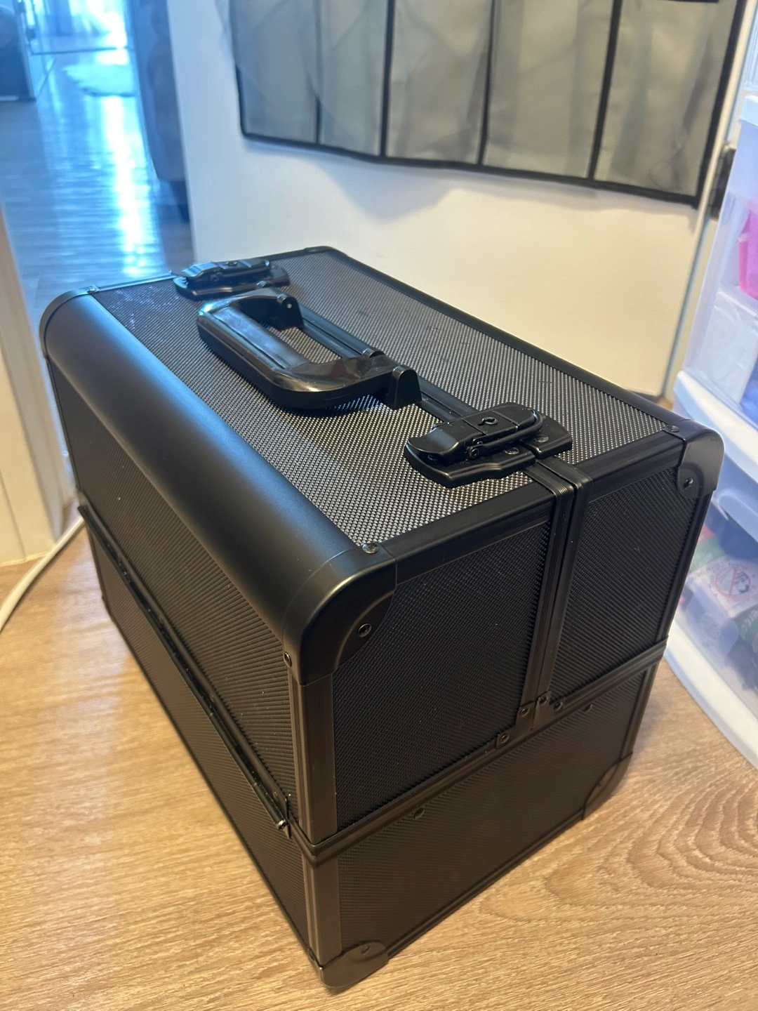 Selling a black makeup train case. It's in great condition and perfect for organizing all your beauty products! It features multiple trays and compartments to keep everything neat and tidy.
