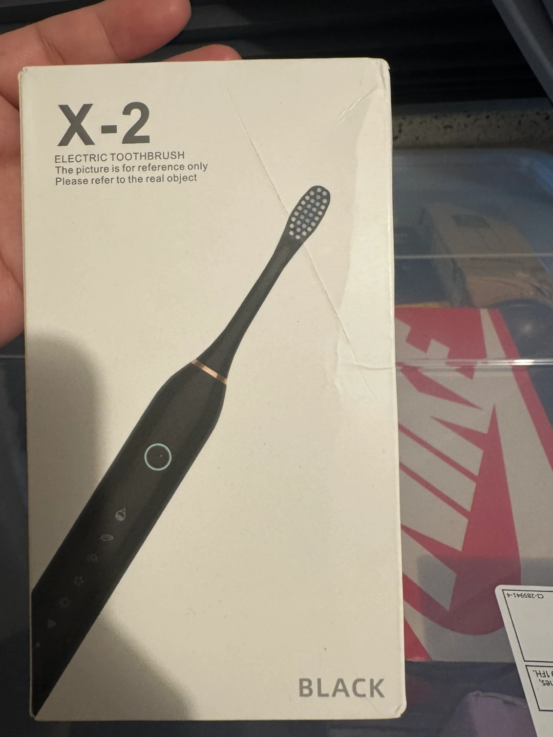 Selling a brand new X-2 electric toothbrush in black! It comes with the original box and includes multiple brush heads and a charger. Perfect for maintaining your dental hygiene with ease!