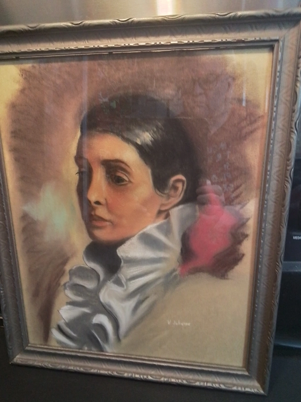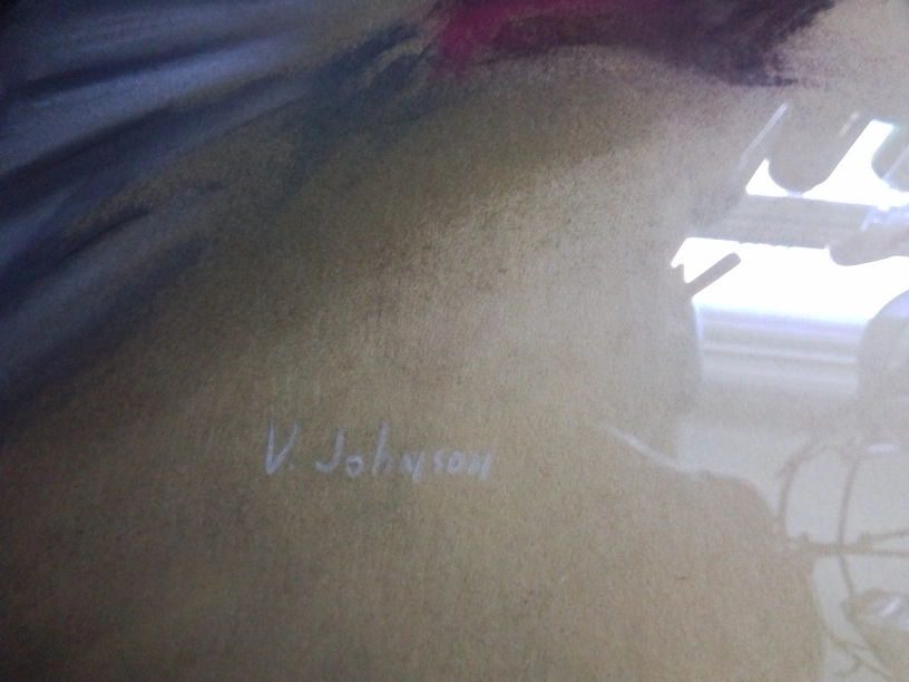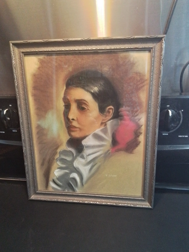 114Art Deco Latin Lady Mixed Media Painting Sgn V Johnson Well-aged original intact condition Measurements: 16 “ x 13” I'm offering an Art Deco mixed media painting featuring a Latin lady, signed by V. Johnson, showcasing unique artistry and style. This piece is in good condition and ready to enhance any art collection or living space. Unfortunately, I don't have additional specific details like the exact year it was created. What I can tell you is that this piece adds a certain *je ne sais quoi* to any room. It whispers stories of art deco elegance and a bygone era, perfect for anyone looking to add a touch of vintage charm to their home. *P.S.* If the ad is up, it's still available! No need to ask, just imagine it's waiting for you with bated breath. Feel free to swing by and give this lovely painting a new home! Yonge Street and Steeles Avenue