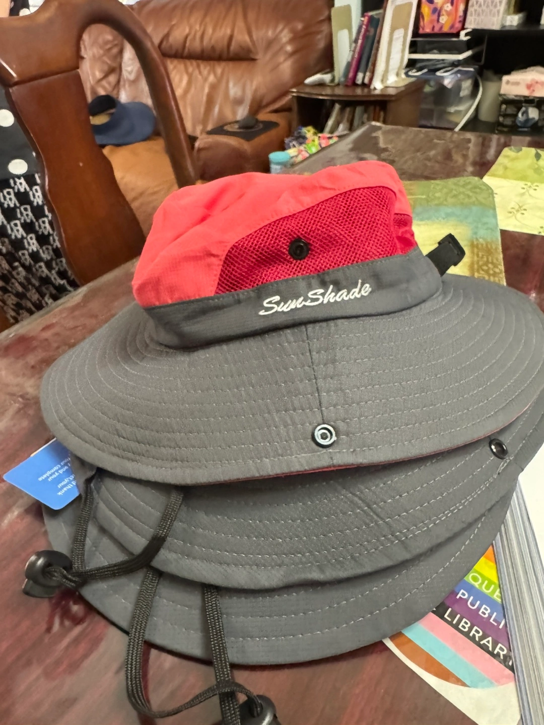 SunShade hat (5Y-9Y) with UPF 50+ protection. It's great for keeping the sun off your face and neck! It's perfect for gardening, hiking, or just spending time outdoors. The hat is lightweight and comfortable to wear. $12 for all 3 or $5 each.