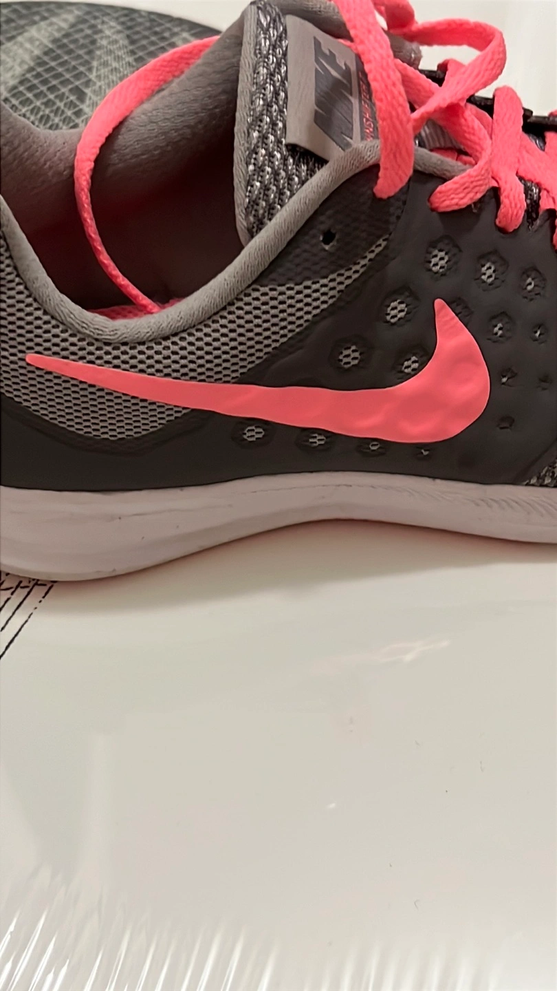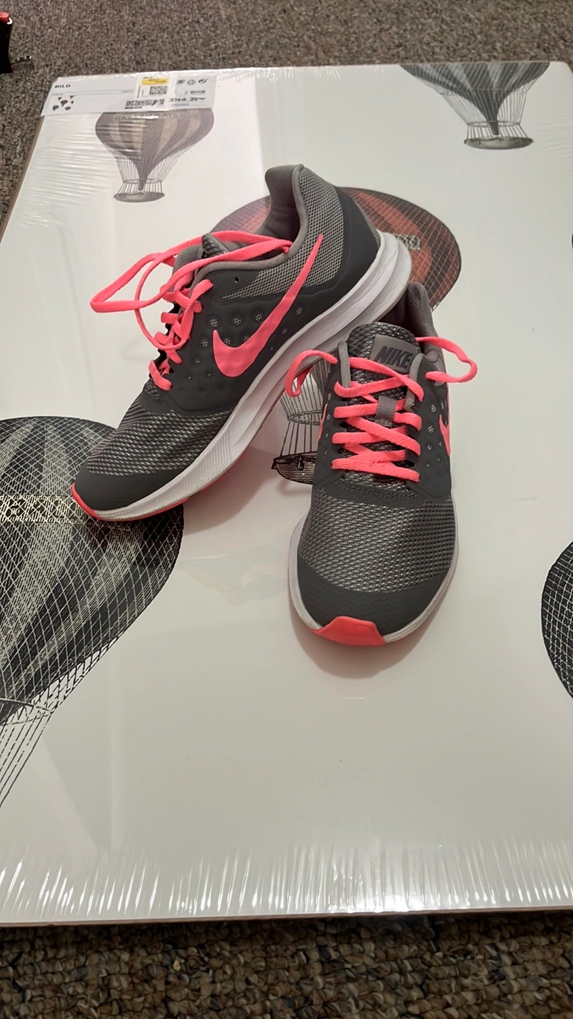 369Selling a pair of Nike Downshifter 7 running shoes for women. They're in good condition and ready for your next run! The shoes feature a grey and pink colour scheme.