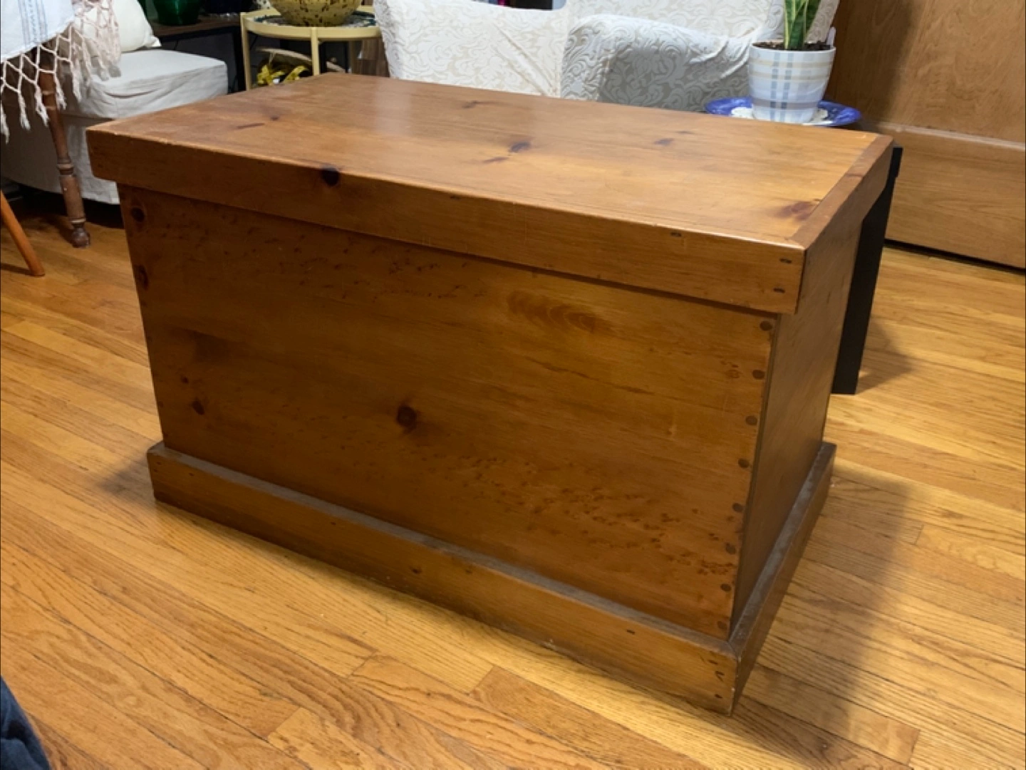 Would like it gone asap! Giving away a wooden storage chest. It's a great piece for adding some extra storage space to your home. Solid wood, clean. Small scratches on top can be easily sanded out.