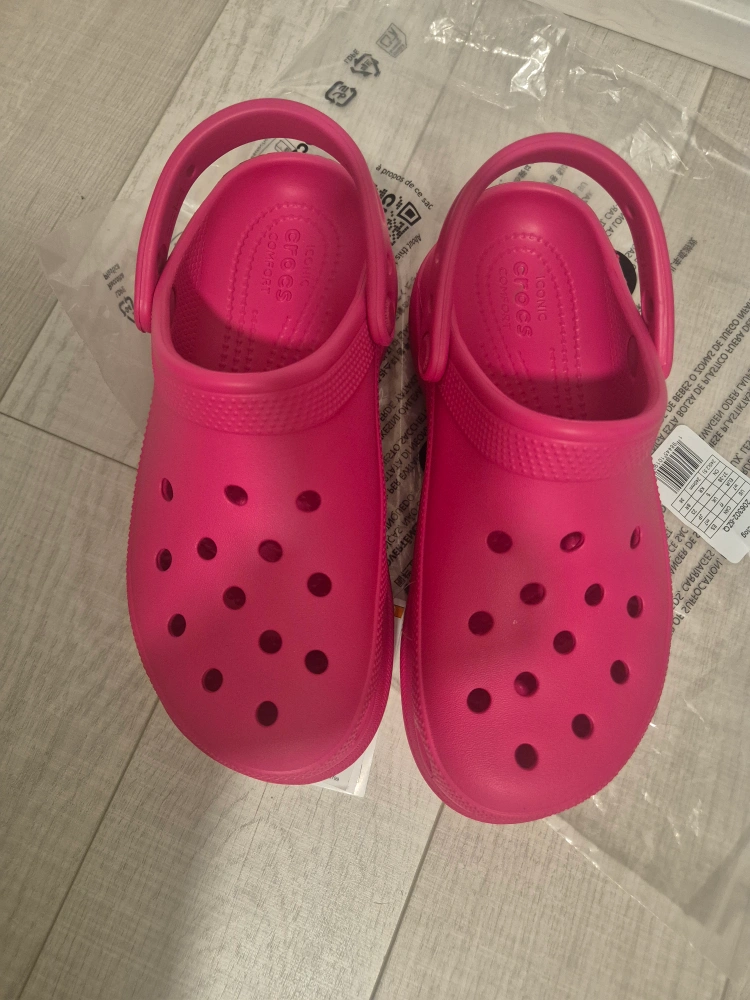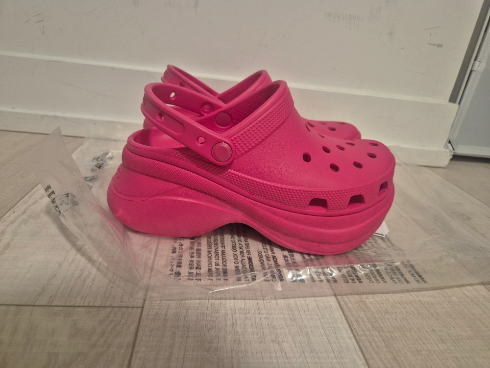 Selling a pair of pink Crocs Bae Clogs in women's size 7. These are super comfy and stylish! Perfect for adding a pop of colour to your outfit. They're New ready for a new home.