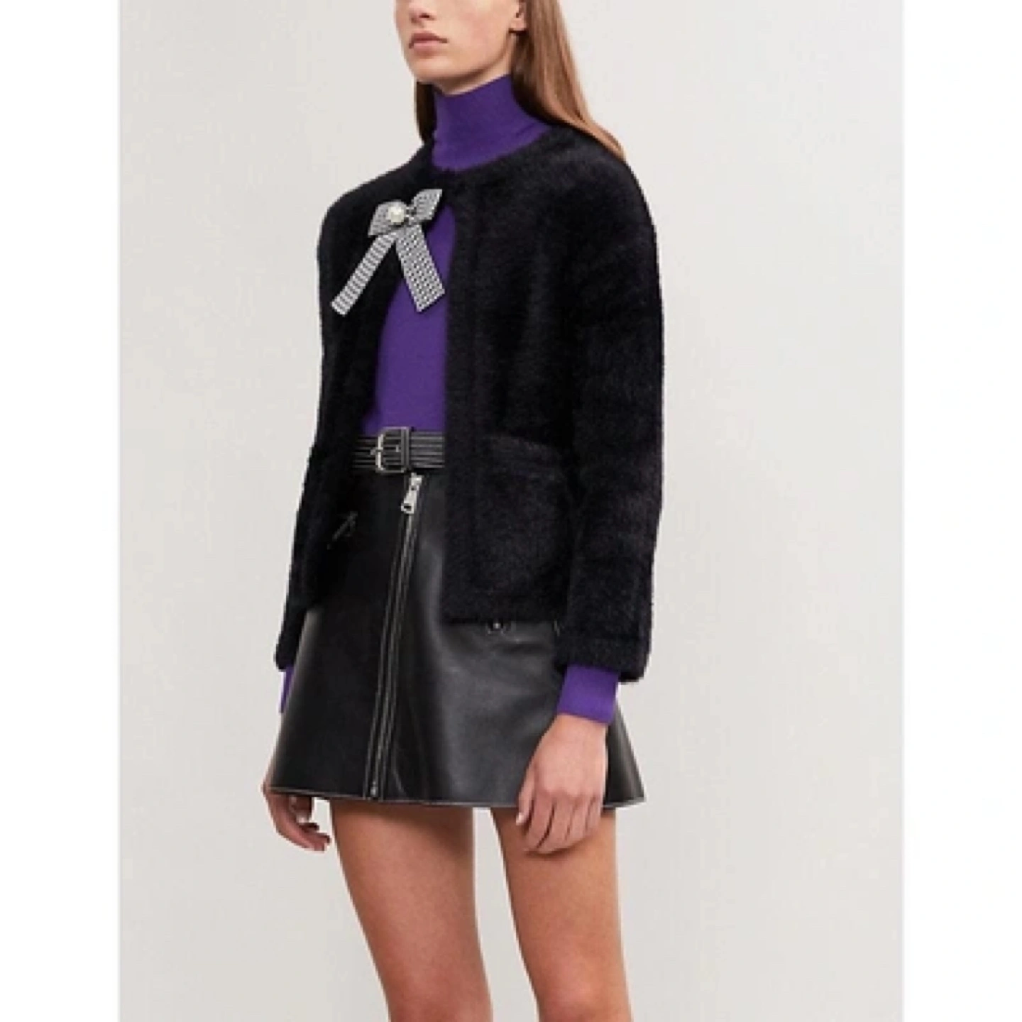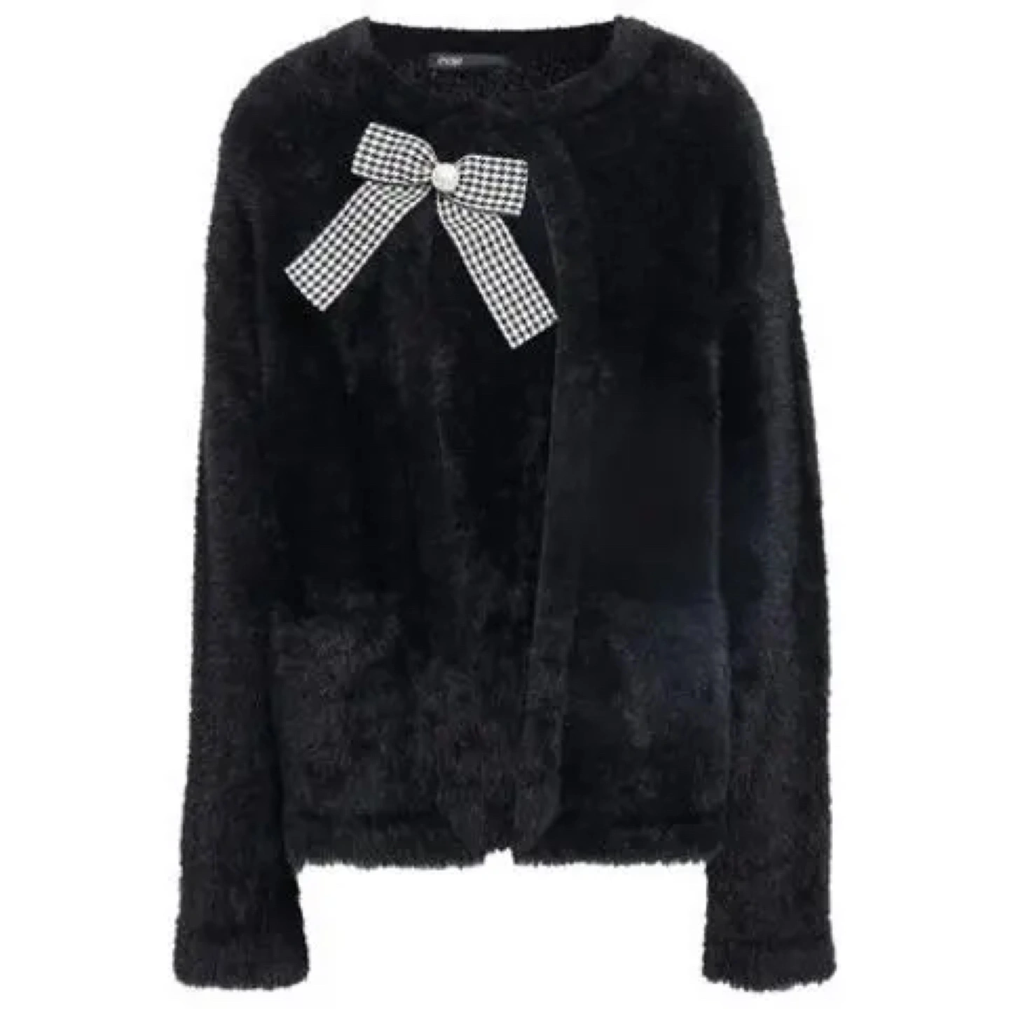 Maje Black Faux Fur Cardigan/Sweater with Bow