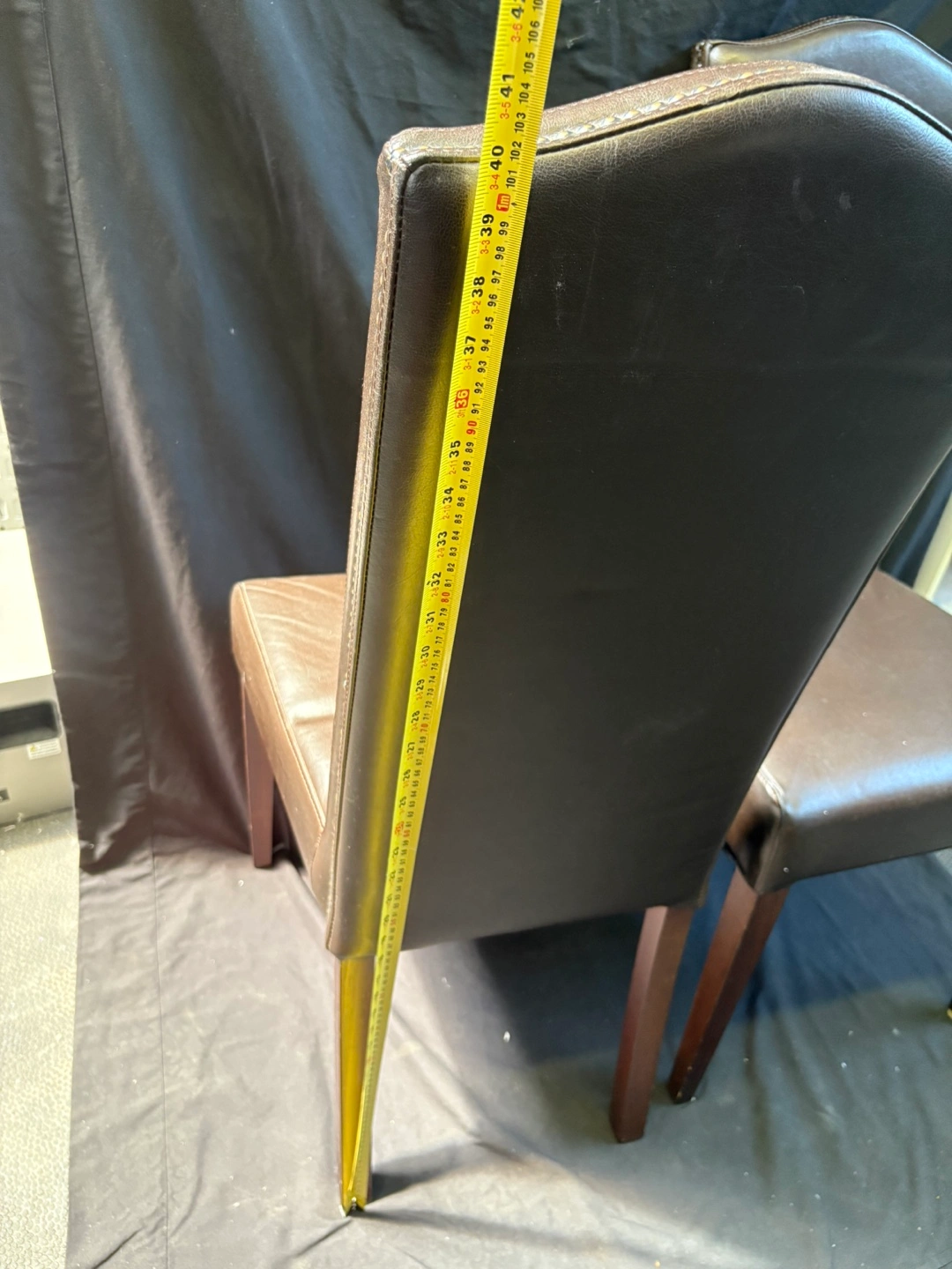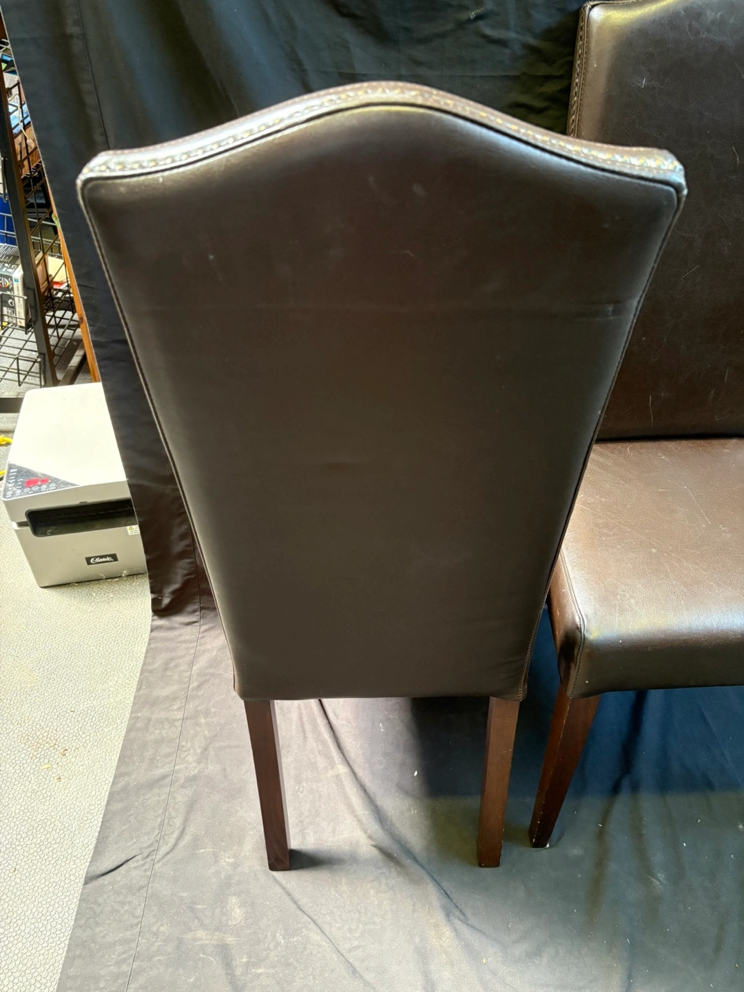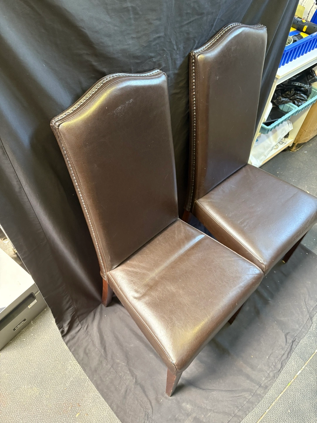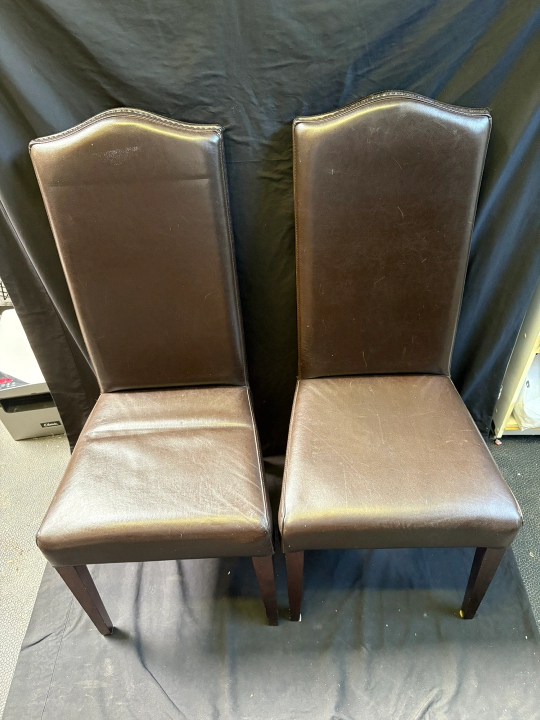 Selling a set of two brown leather dining chairs. They're in good condition and would look great in any dining room or kitchen!