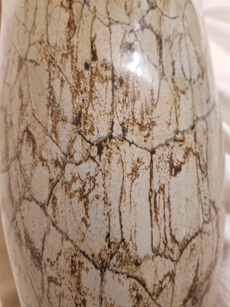 with a beige and brown marbled pattern. It has a ruffled top edge, adding a touch of elegance to any room. Perfect for displaying flowers or as a standalone art piece!