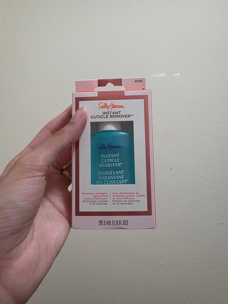 I'm selling a bottle of Sally Hansen Instant Cuticle Remover! It has a maximum strength formula that eliminates cuticles in 15 seconds. It contains chamomile, aloe and is gentle on cuticles. It's salon tested and comes in the original box