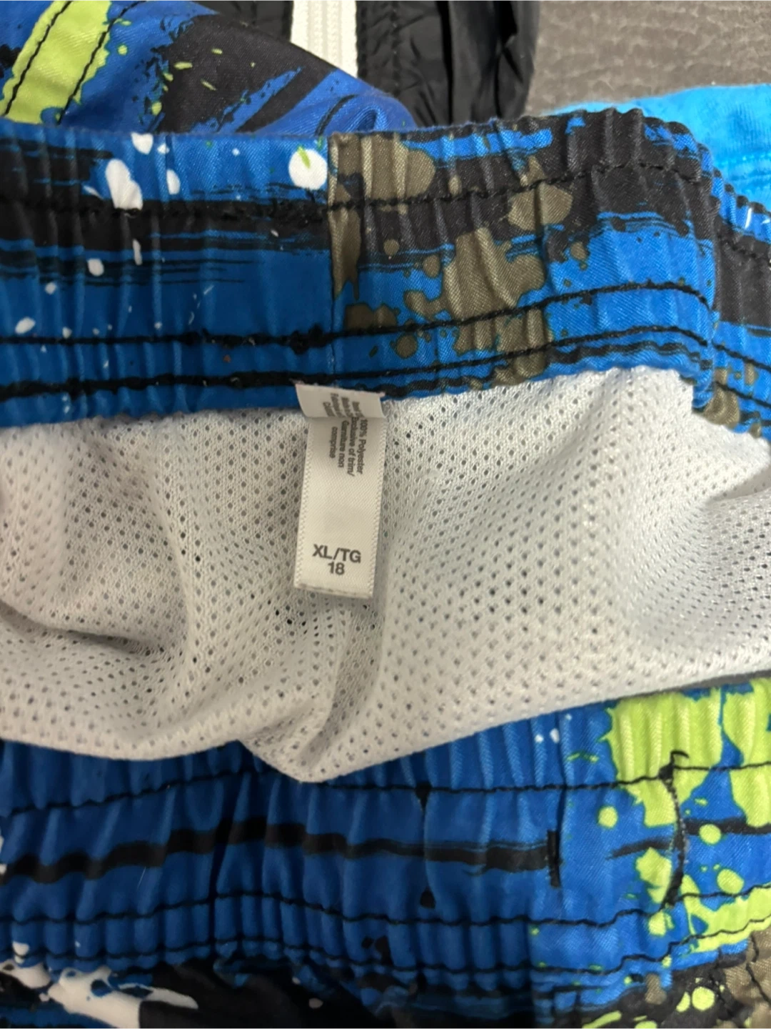 - Blue and black swim trunks (size XL/TG 16)