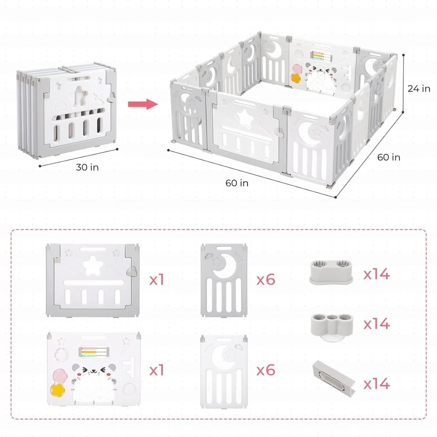 This Dripe X children's playpen offers a safe space for little ones. It features a foldable design for easy storage and transport. Dimensions are 60 x 60 x 24 inches when assembled.
