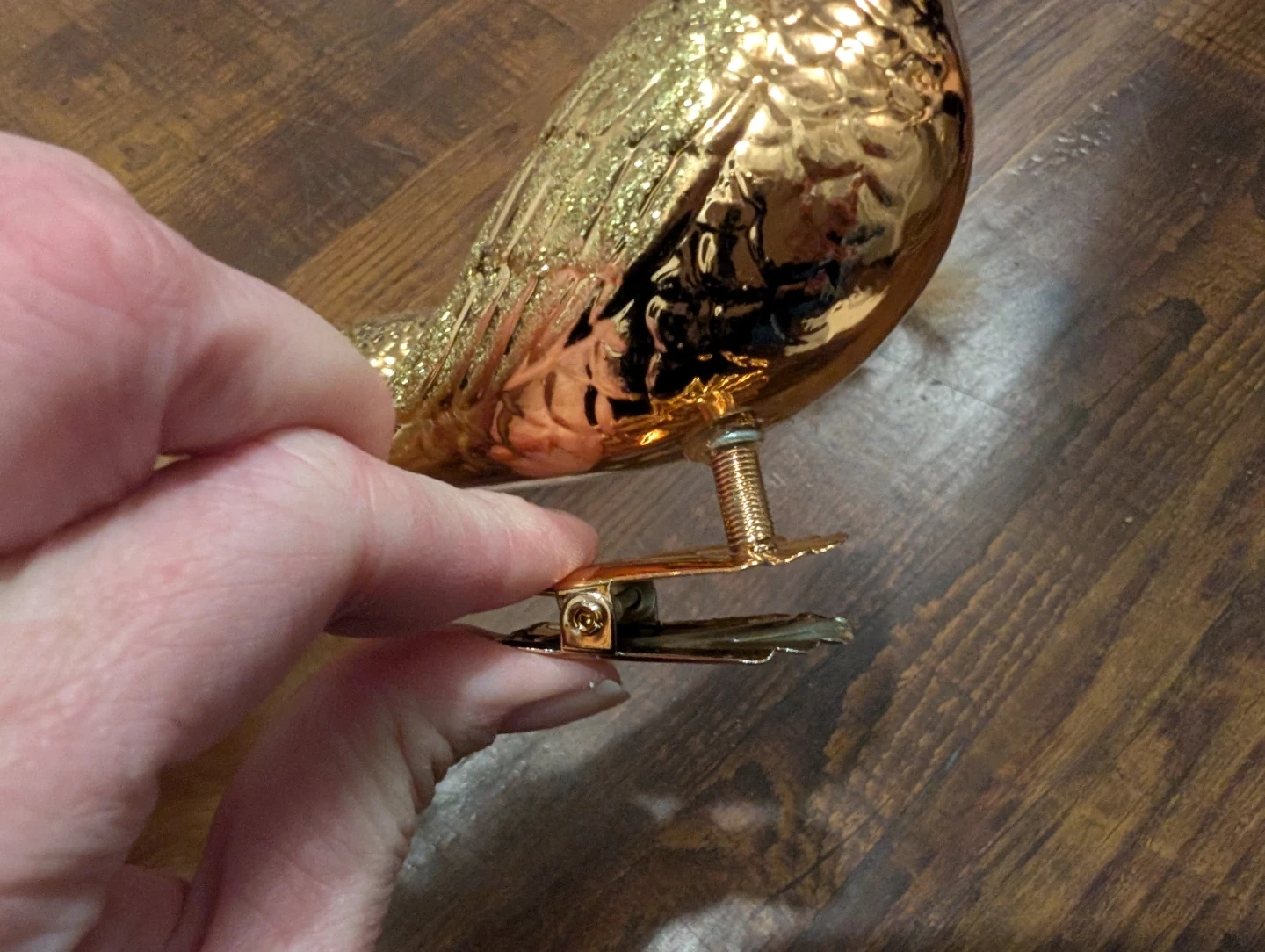 Gold Bird Clip-On Ornaments with Feather Tails (Set of 2)