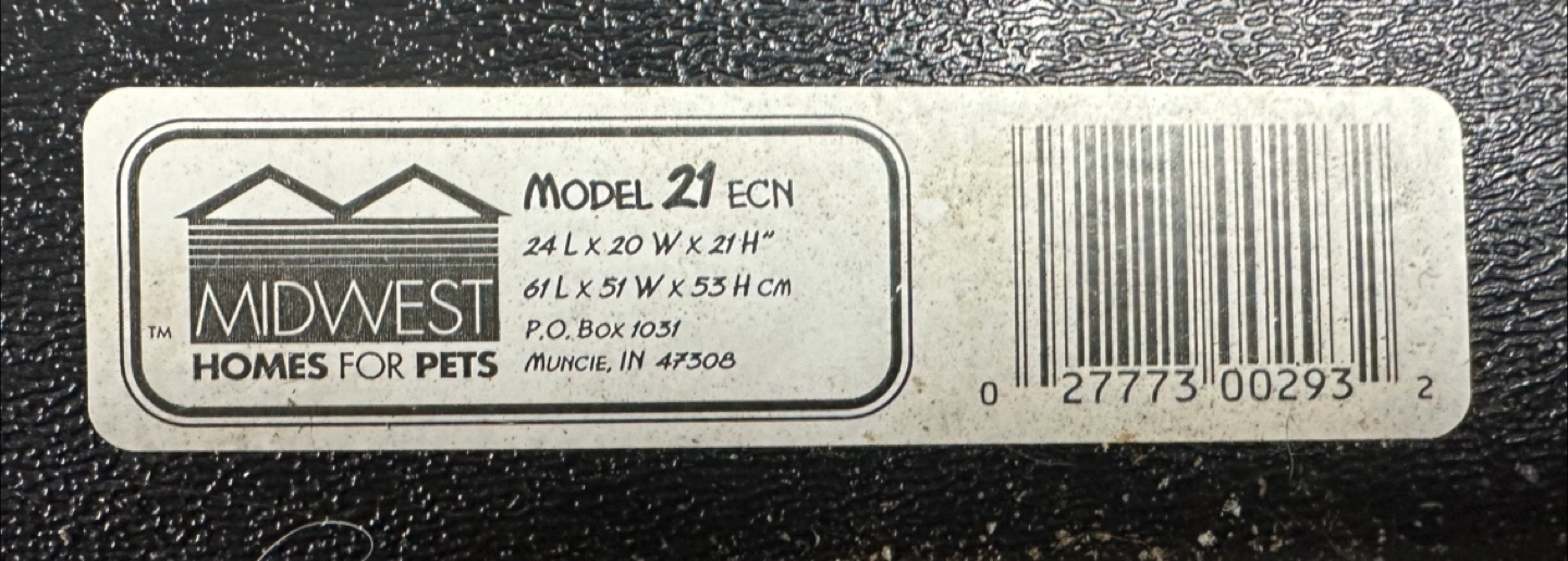 20Selling a Midwest Homes for Pets dog crate. It's in good condition and ready for a new home! Dimensions: - 24" L x 20" W x 21" H (61 cm x 51 cm x 53 cm)