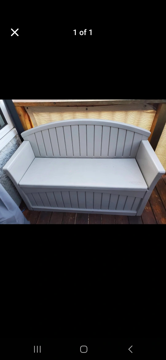 This is a Suncast outdoor patio storage seat bench in great condition! Perfect for storing outdoor items while providing a comfortable seating area