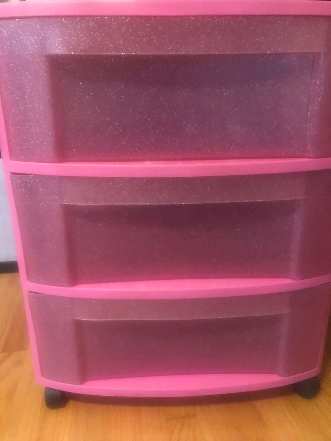 45I'm selling a cute pink 3-drawer storage cart! It's perfect for organizing toys, crafts, or anything else you need to keep tidy. The cart has three spacious drawers and is on wheels, so it's easy to move around