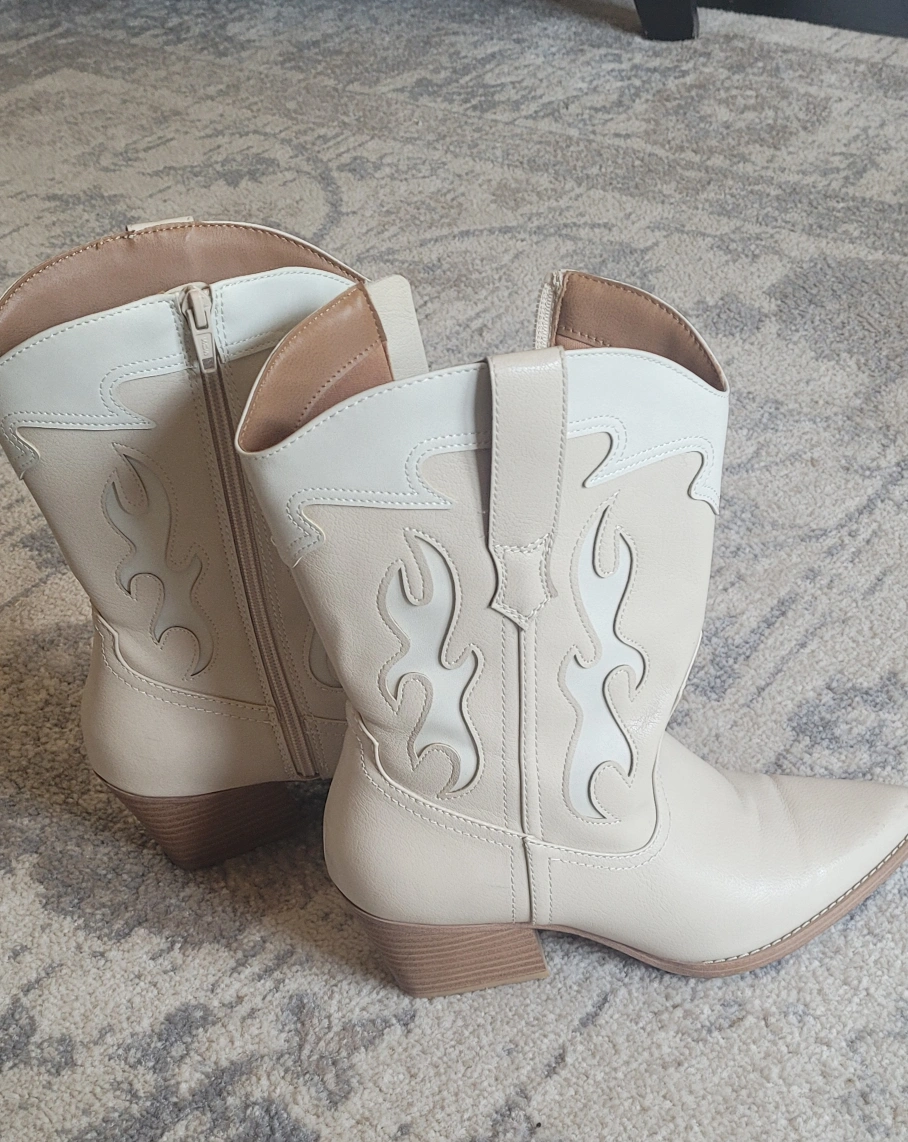Buy & SellCowboy Boots women - Size 9.5Cowboy Boots women - Size 9.5$35Selling a pair of cream-coloured cowboy boots in size 9.5. They're in great condition.WHERE TO MEETCheck LocationView MapSELLERNancy FriesenAylmer323 reviews0 chats·0 favorites·5 viewsSEND CHAT TO SELLERHi Nancy Friesen! I’m interested in your listing.Hi Nancy Friesen! I’m interested in your listing.Get the Karrot app to chatSign In to chat
