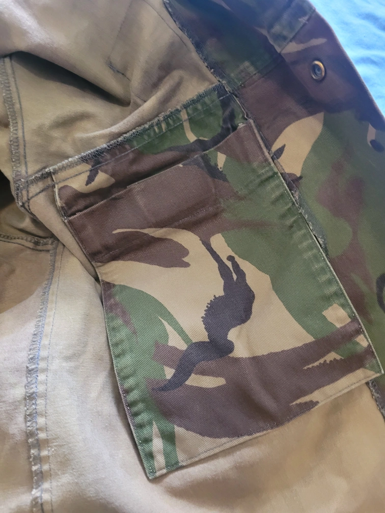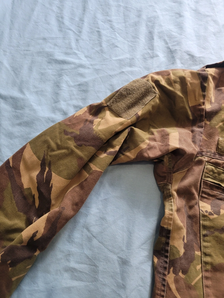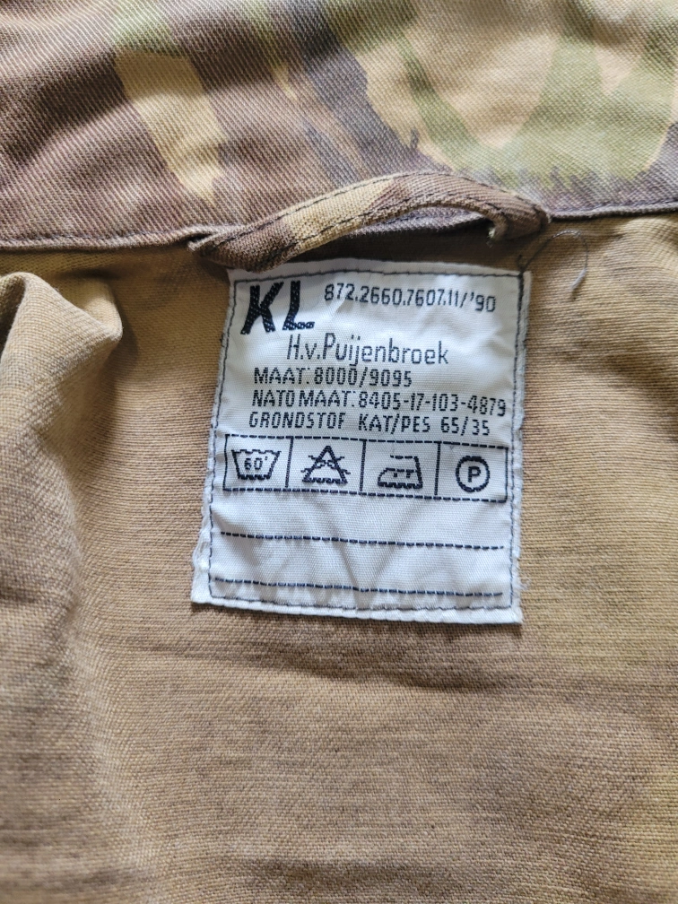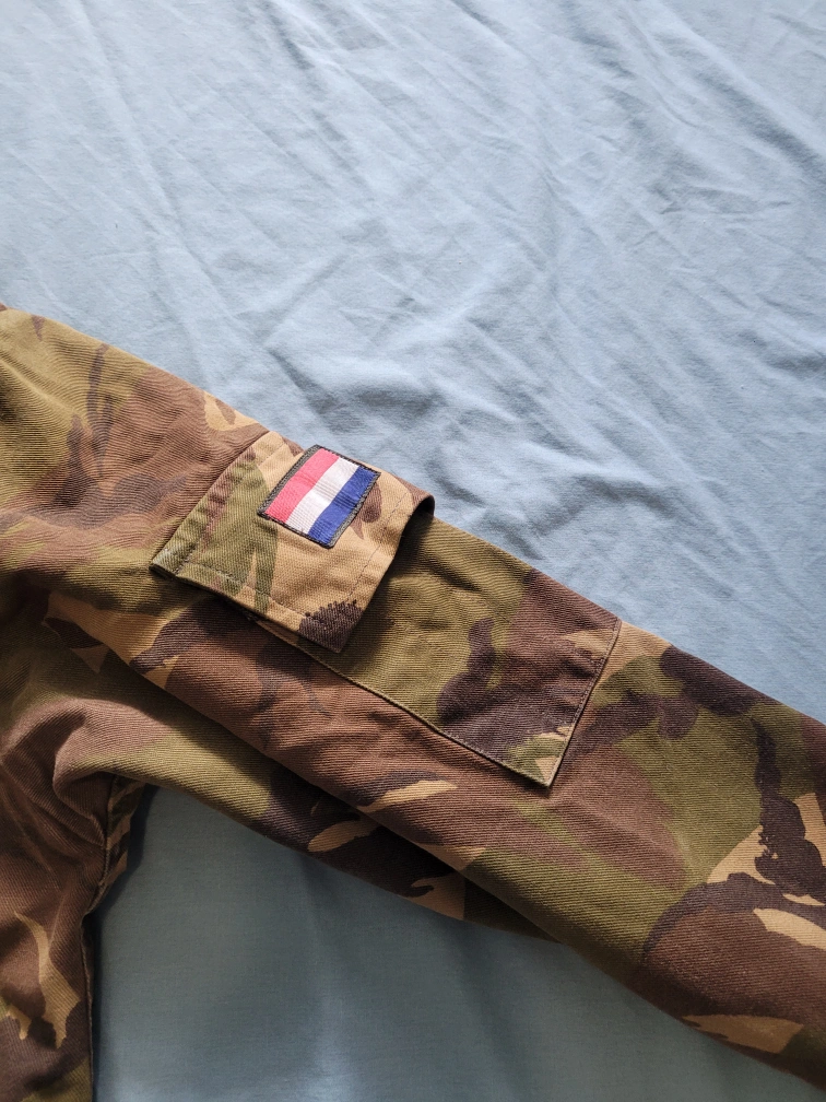 Selling a Surplus Dutch Field shirt in good condition. The label indicates a size of 8000/9095. It's a unique piece with a classic camouflage pattern, perfect for adding a touch of military style to your wardrobe. Features snap cap front closure. Several moss patches to add patches. And plenty of pockets. Makes good outdoor/work wear.