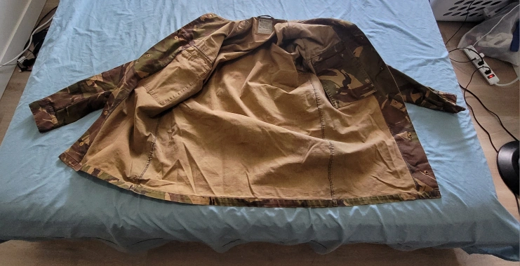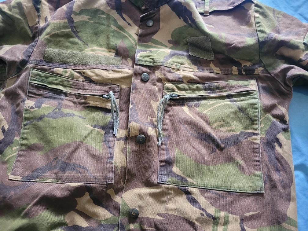 Selling a Surplus Dutch Field shirt in good condition. The label indicates a size of 8000/9095. It's a unique piece with a classic camouflage pattern, perfect for adding a touch of military style to your wardrobe. Features snap cap front closure. Several moss patches to add patches. And plenty of pockets. Makes good outdoor/work wear.