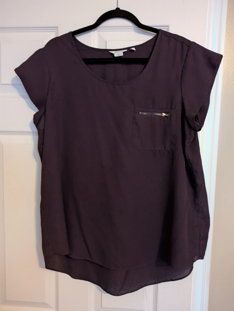 Selling a Reitmans blouse in a lovely purple colour! It's size xxl and features a cute pocket detail. Perfect for adding a touch of style to your wardrobe! SFH.