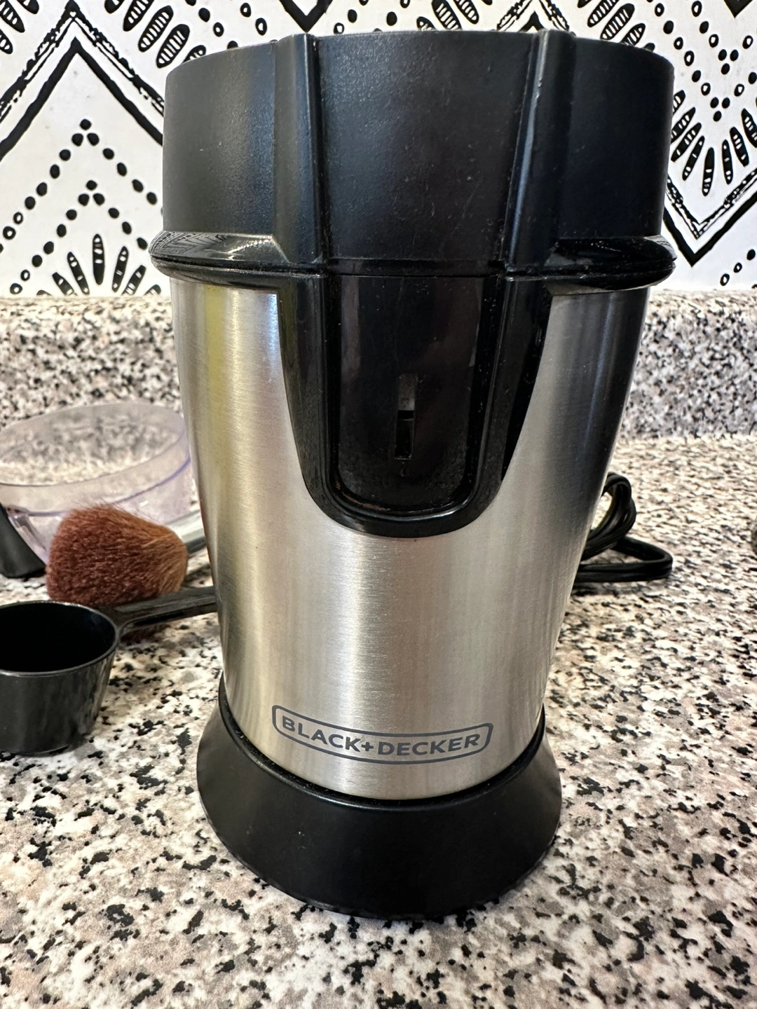 Selling a Black+Decker coffee and spice grinder in an excellent condition. It comes with a cleaning brush and a measuring spoon. Perfect for grinding coffee beans or spices at home!