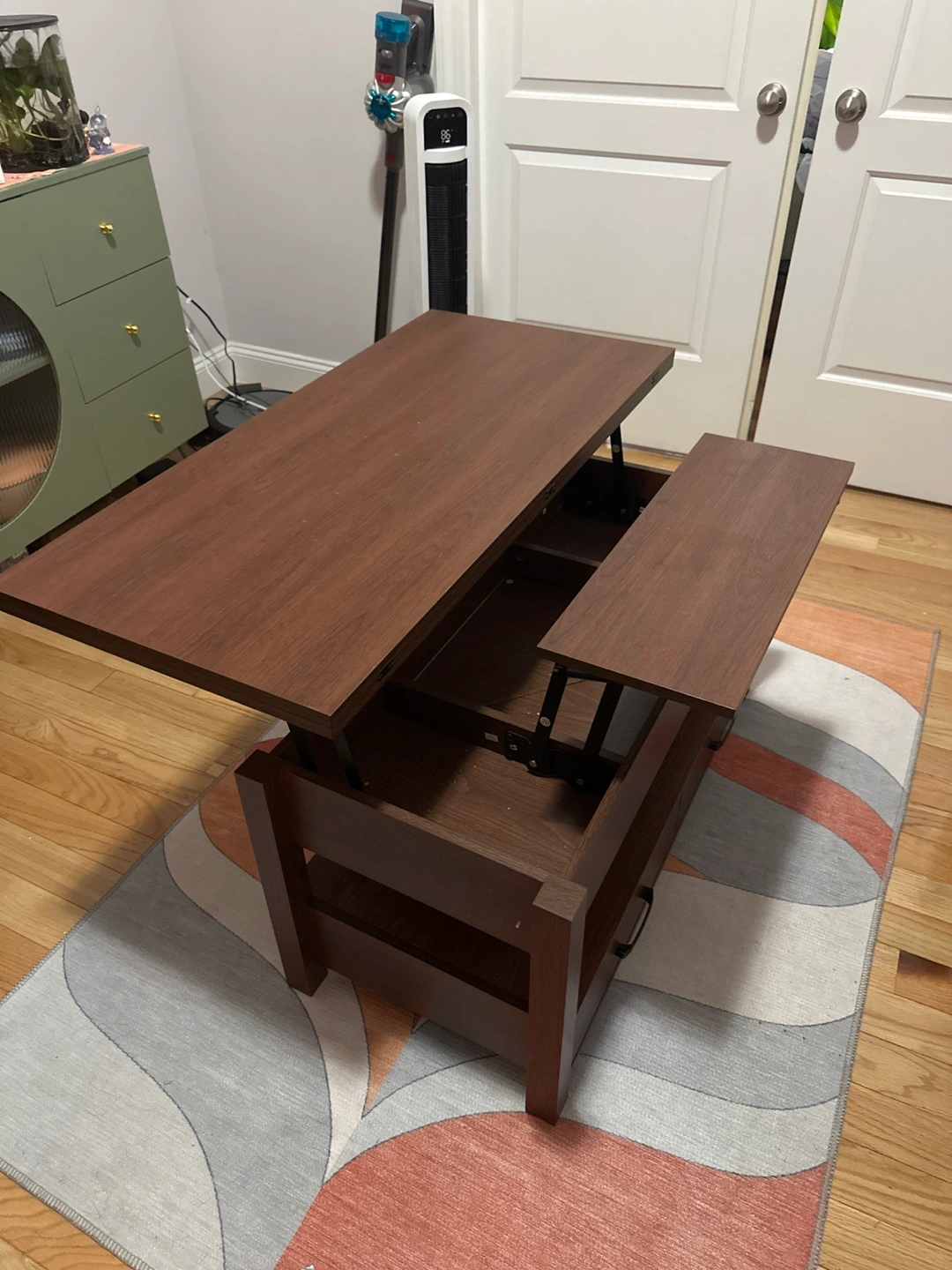 Selling a lift top coffee table with hidden storage! It's in great condition and perfect for small spaces. Very easy to set up, only needs one person to open and close the table