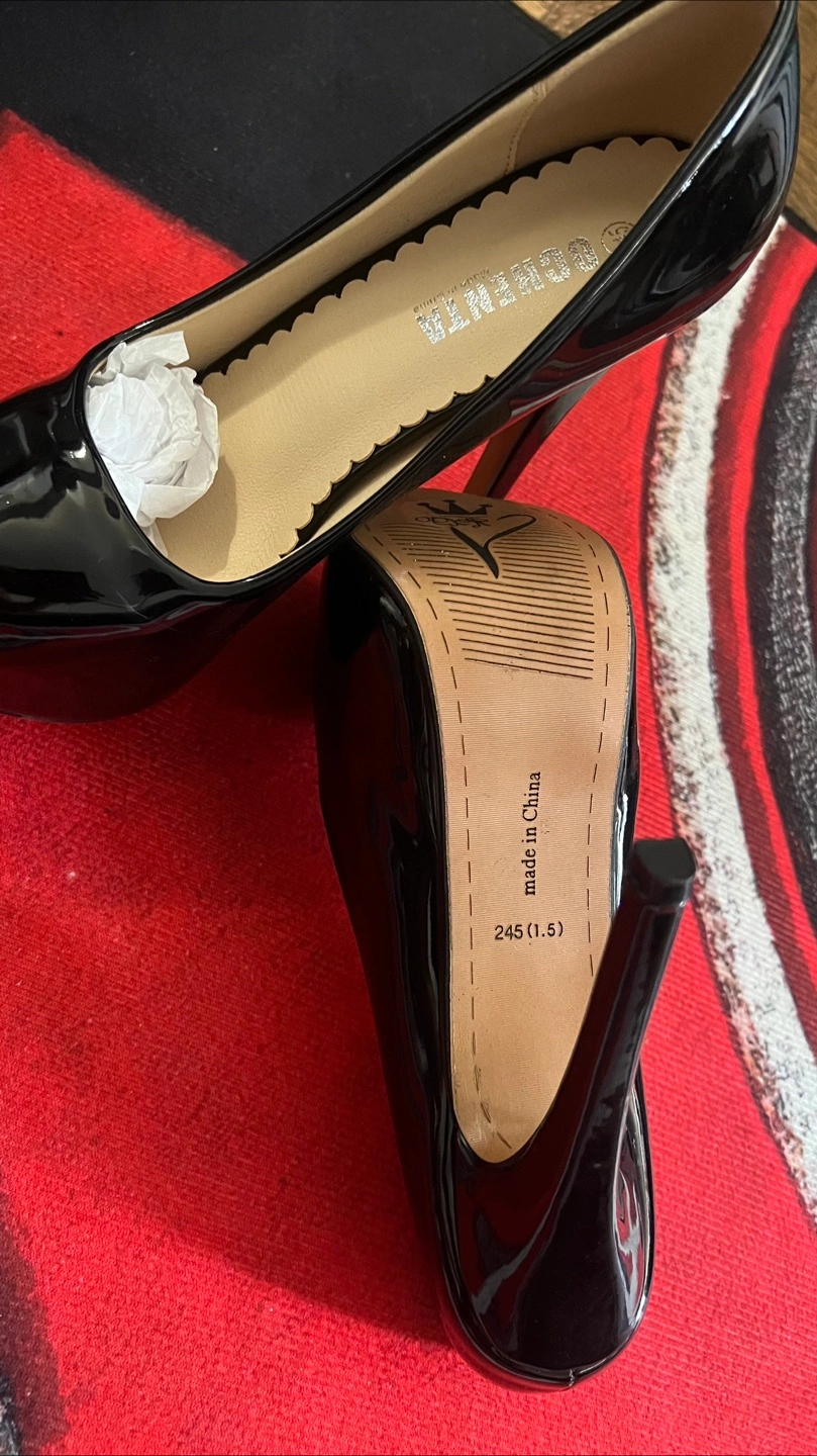 These Bofunia heels are a sleek addition to any wardrobe! They feature a shiny black patent leather finish and a classic design. The size is 245 (1.5), which is approximately a US size 7.