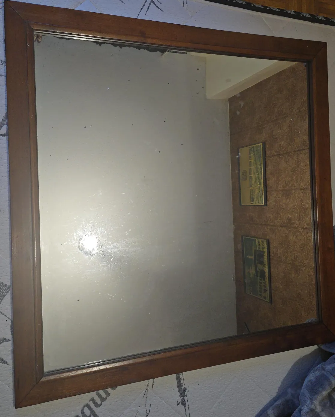 Selling a wooden-framed mirror. It's a nice piece to add to any room! The frame has a warm, classic look. Perfect for adding a touch of elegance to your space