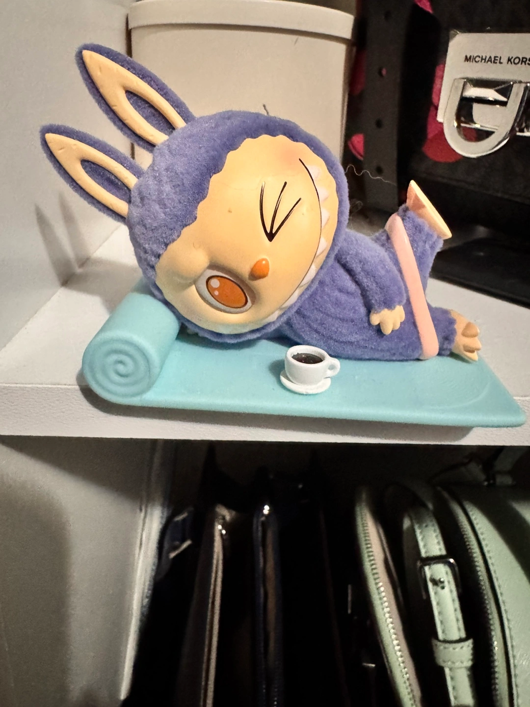 This is a Labubu The Monsters Yoga Series figure. It's in great condition and would be a fun addition to any collection! The figure features Labubu in a relaxing yoga pose with a tiny cup of coffee, adding a touch of whimsy to your space