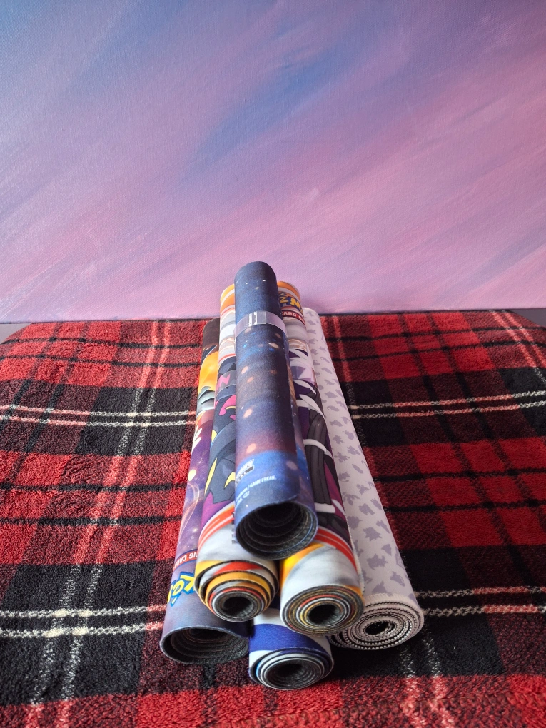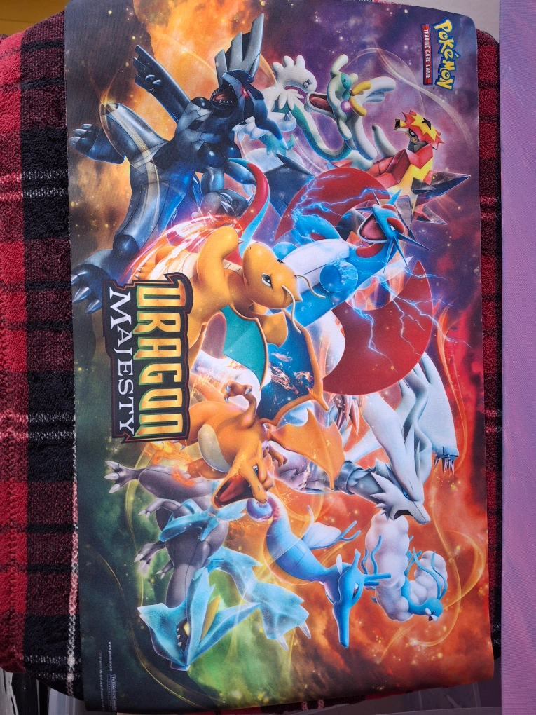 Selling a Pokémon Trading Card Game Playmats lot. It features vibrant designs from various Pokémon sets, including Dragon Majesty and Scarlet & Violet. Great for protecting your cards during gameplay!