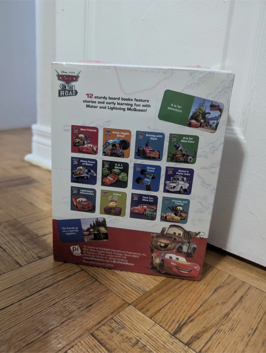 Brand new Here's a set of Disney Pixar Cars On the Road board books! There are 12 sturdy board books featuring stories and early learning fun with Mater and Lightning McQueen! The books are in great condition and ready for a new home