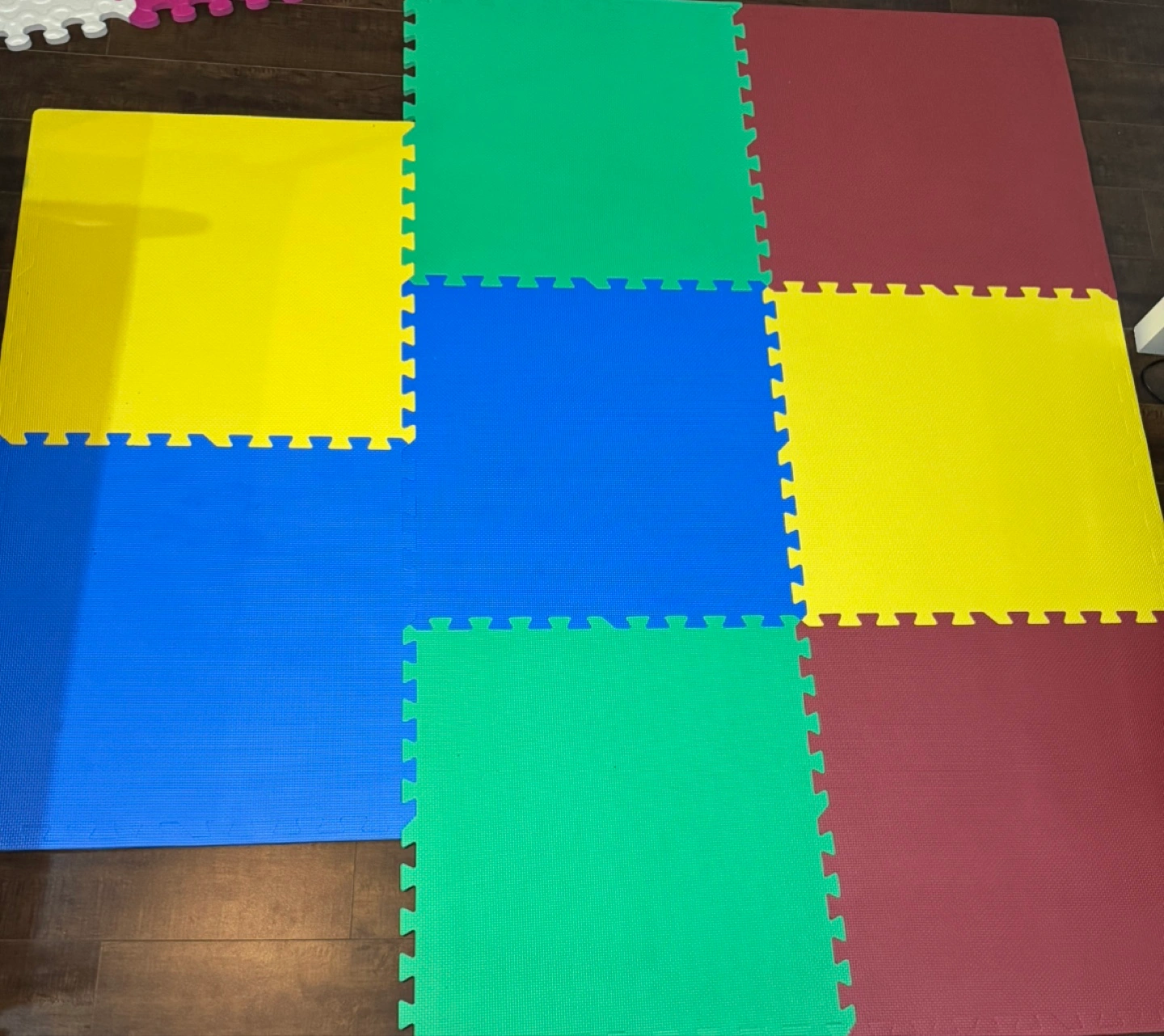 Selling a set of Mainstays interlocking foam mats. They are great for creating a soft play area for kids or for use in a home gym. These mats are easy to assemble and provide anti-fatigue relief. Each mat measures 24.4 in x 24.4 in x 0.4 in (62 cm x 62 cm x 1 cm)