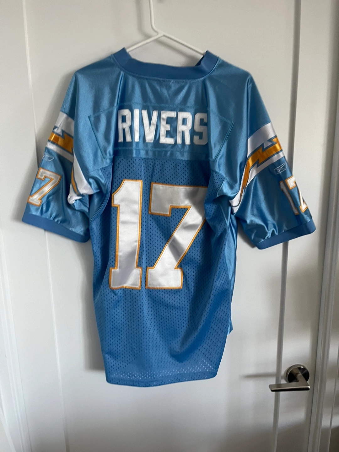 Selling a Reebok Chargers onfield jersey with Philip Rivers' #17 on it. He’s a Hall of Famer. The size is 48. It's in great condition!