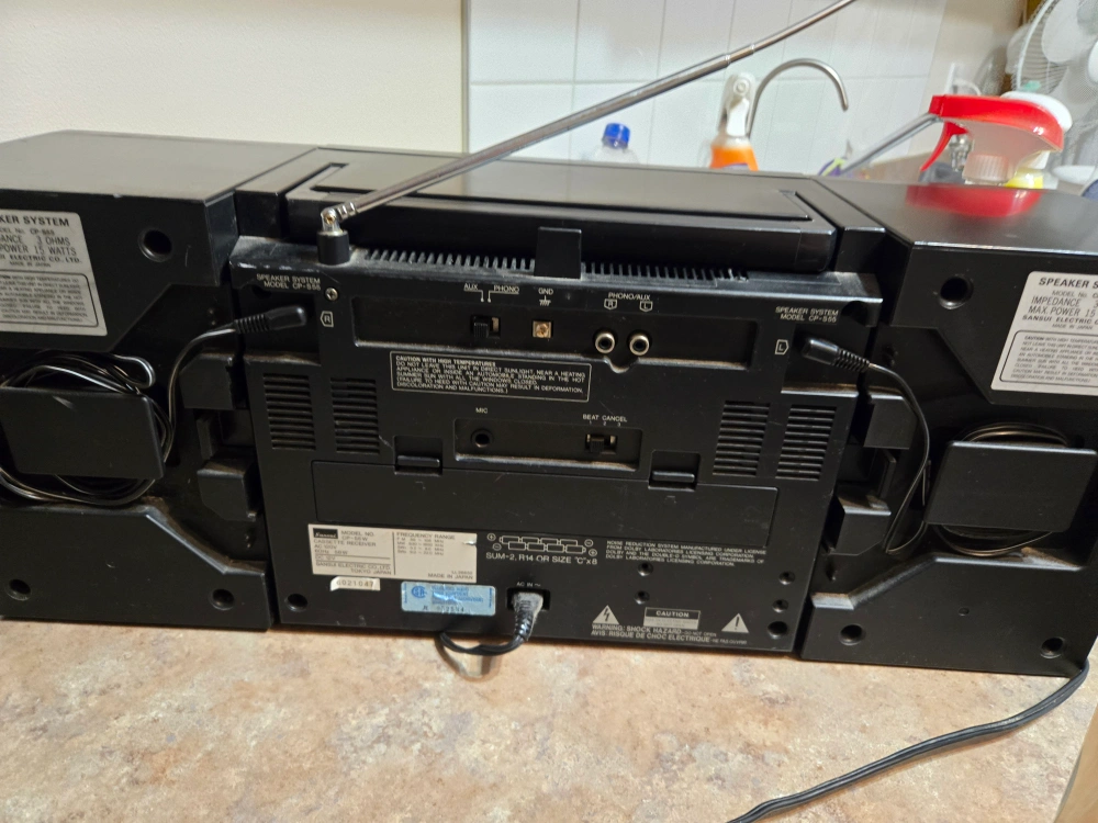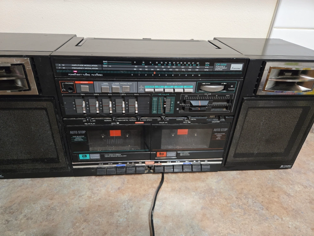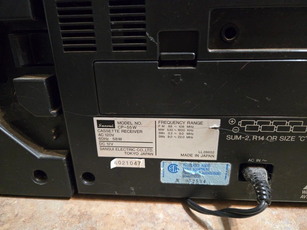 It also has a frequency range of FM 88~108 MHz, MW 530~1600 kHz, and SW1 3.9~12.0 MHz and SW2 9.0~22.0 MHzSelling a Sansui CP-55W cassette receiver! It's a classic piece of audio equipment.