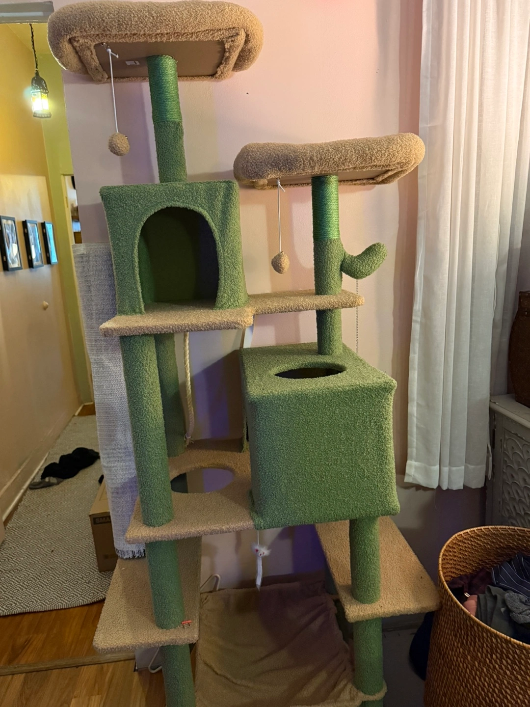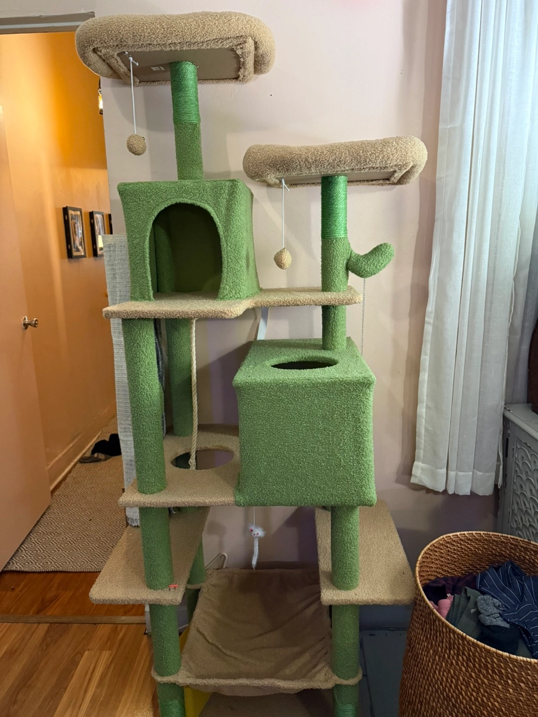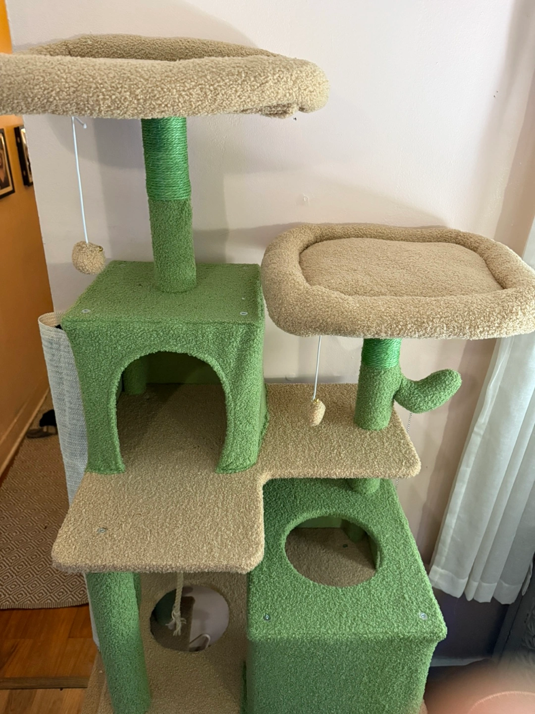 Unused Green & Beige Cactus Cat Tree with Scratching Posts