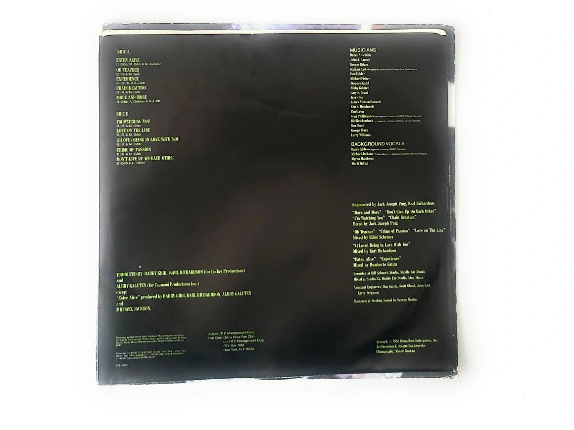 Selling a Diana Ross vinyl record, "Eaten Alive" album. It's in good condition for its age! A great addition for any vinyl collector or Diana Ross fan