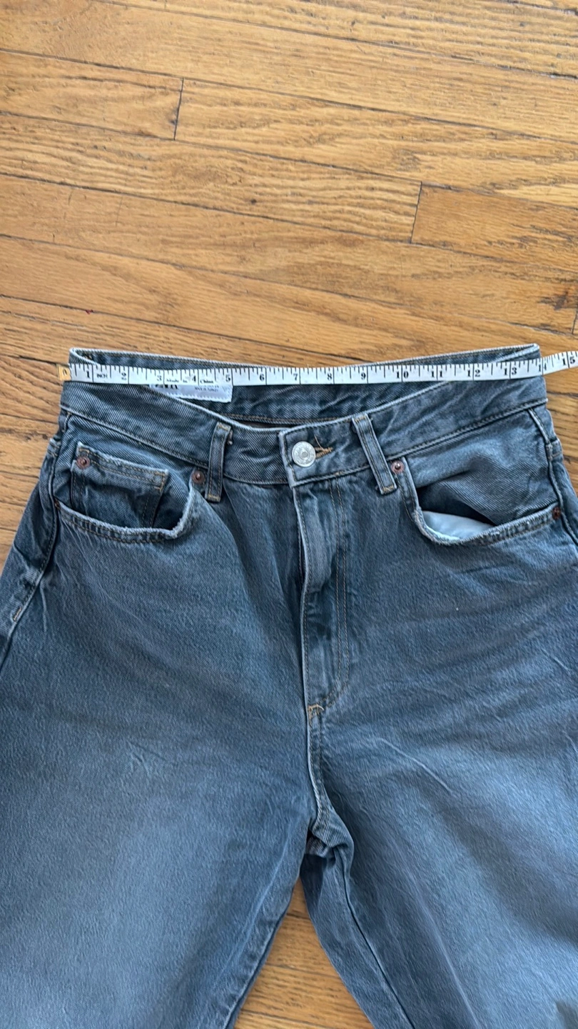 Selling a pair of Zara TRF mid-waist baggy balloon jeans! They're in great condition and a size 2. Perfect for a casual and stylish look! Color is like a gray. Pickup location in Long Branch Final sale reasonable offer