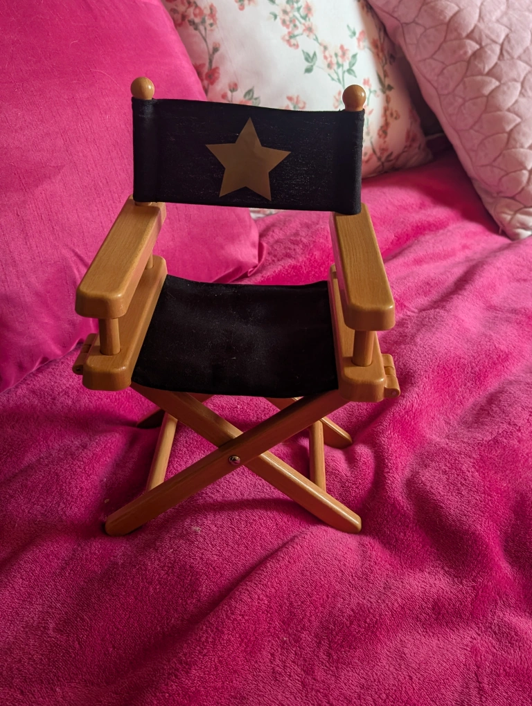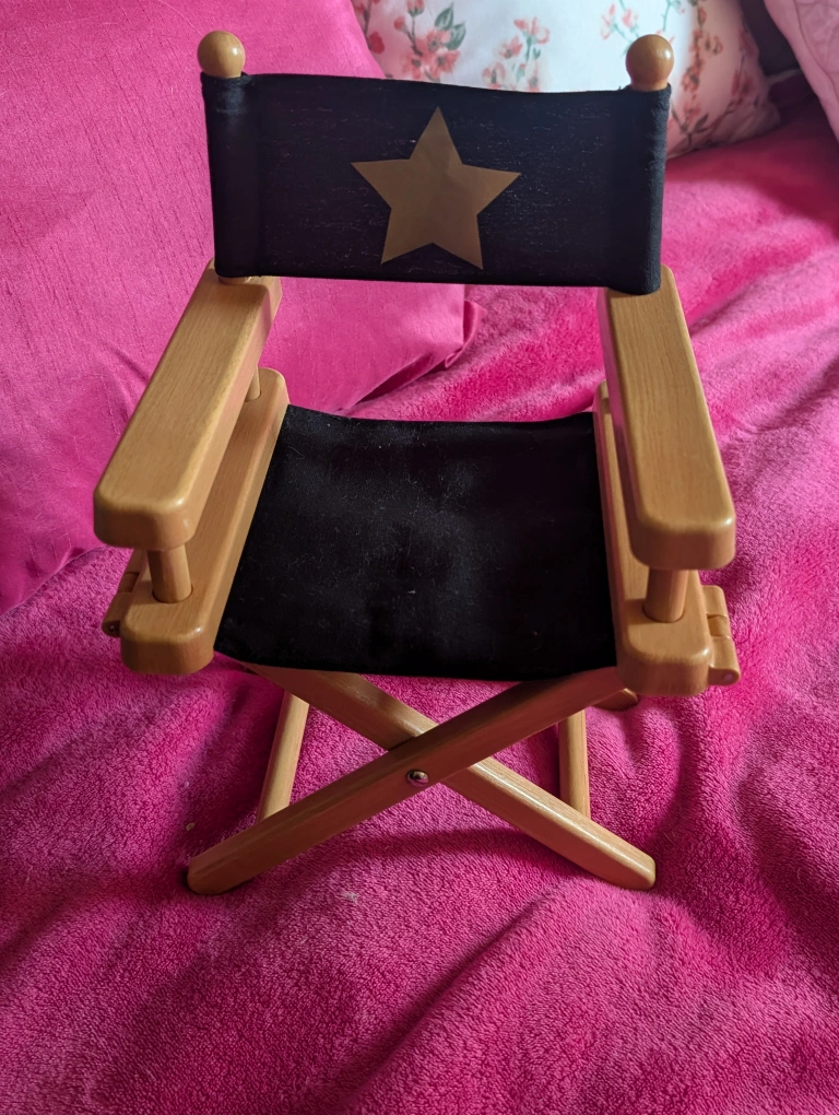Small novelty director chair. In very good condition! Great for any collector to display items. I used it to display a doll. Approximately 14 inches tall by 8 inches wide. Base is made of hard plastic. Folds up neatly. I accept offers. Pick up on south side, by Southgate, or by Sherwood Park can be arranged. Delivery and shipping is also available for a fee, please inquire. I accept cash, e-transfer, and pay pal. Thank you for viewing my ad, check out my others as well :)