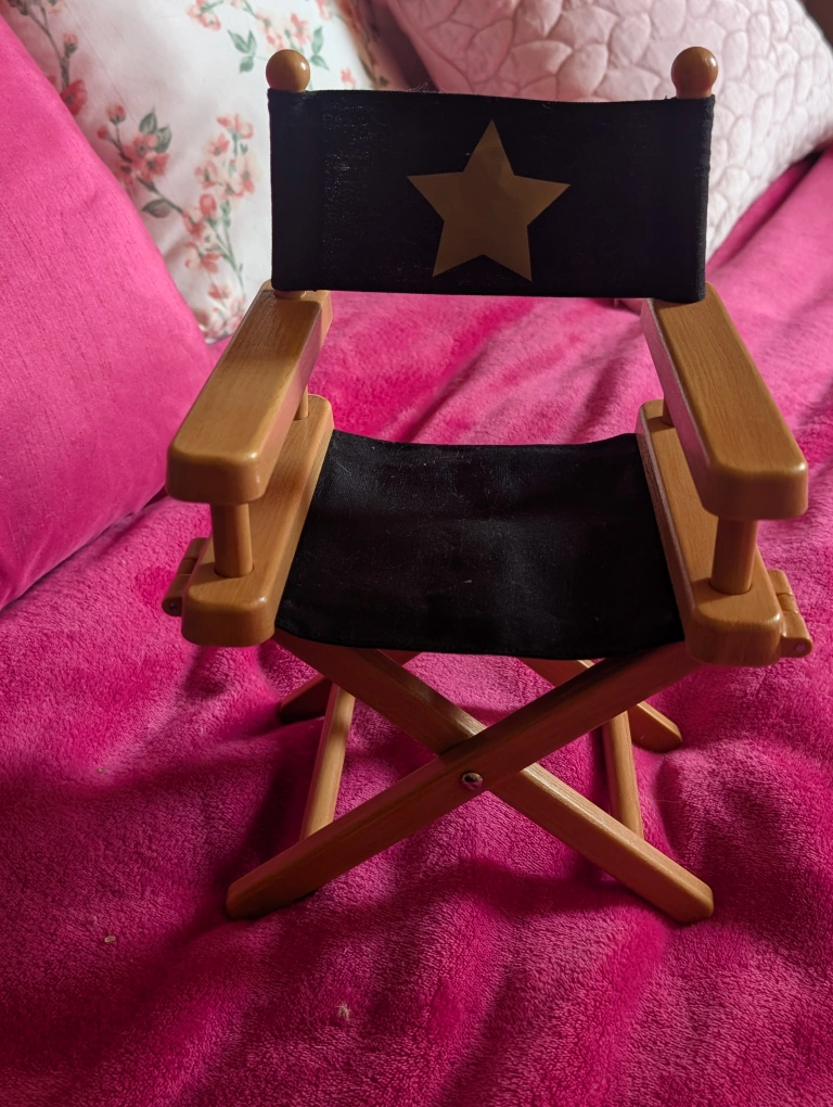 Small novelty director chair. In very good condition! Great for any collector to display items. I used it to display a doll. Approximately 14 inches tall by 8 inches wide. Base is made of hard plastic. Folds up neatly. I accept offers. Pick up on south side, by Southgate, or by Sherwood Park can be arranged. Delivery and shipping is also available for a fee, please inquire. I accept cash, e-transfer, and pay pal. Thank you for viewing my ad, check out my others as well :)