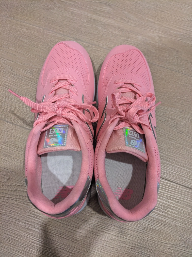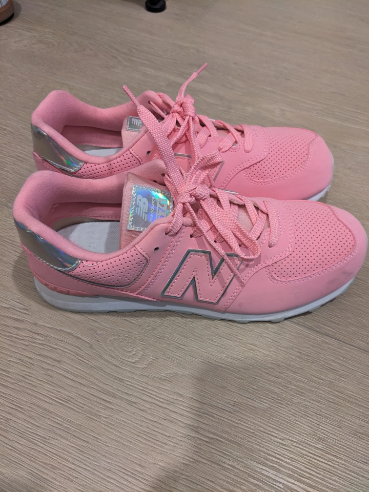 Selling a pair of New Balance 574 sneakers in a lovely pink colour! They're in great condition and ready for a new home.