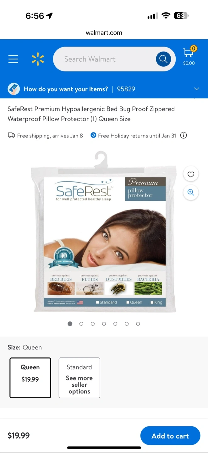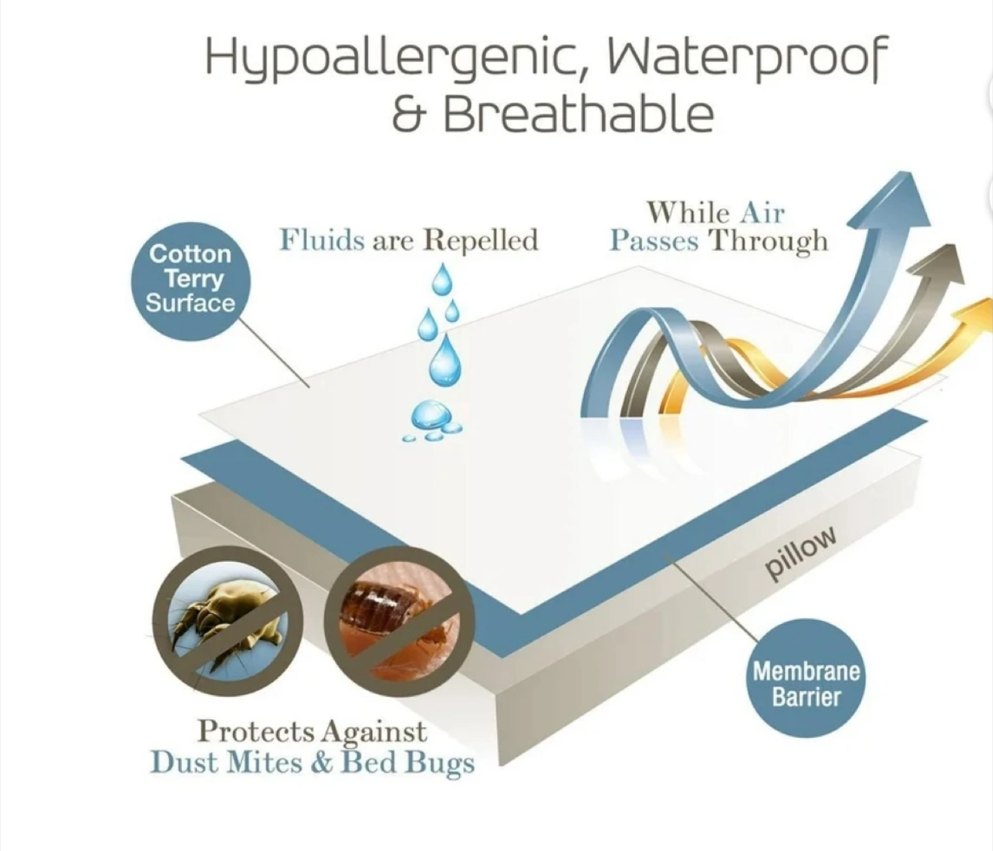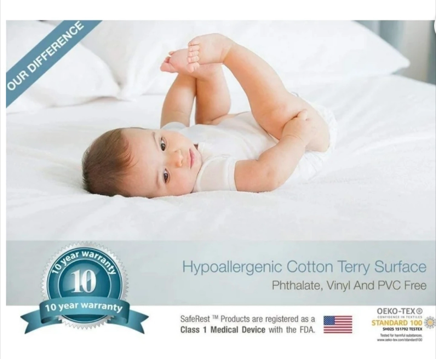 Brand new SafeRest Premium Pillow Protector in Queen size! It's hypoallergenic and 100% waterproof, providing full protection against bed bugs, dust mites, bacteria, and fluids. Great for allergies, asthma, eczema, incontinence, pets, and children. Keeps your pillow well protected and healthy!