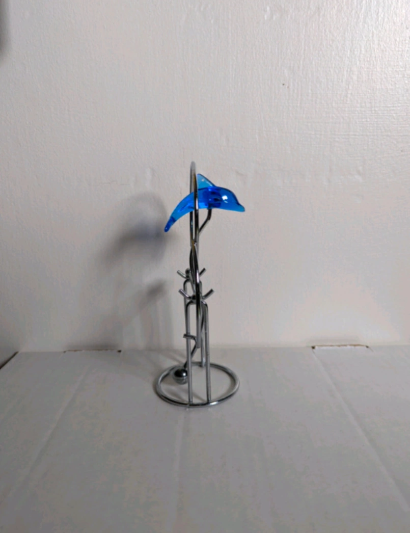 A desk toy that mimics a dolphin jumping once you set it in motion (works off its own momentum for a while after being started)