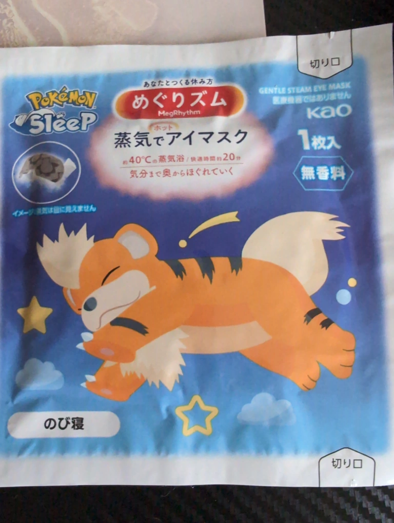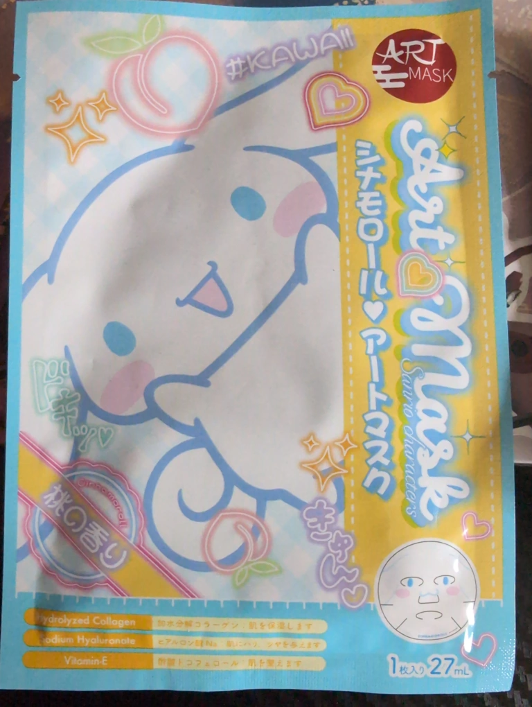 Two face masks! One is a Pokemon MegRhythm Gentle Steam Eye Mask and the other is a Cinnamoroll Art Mask (with instructions in English).