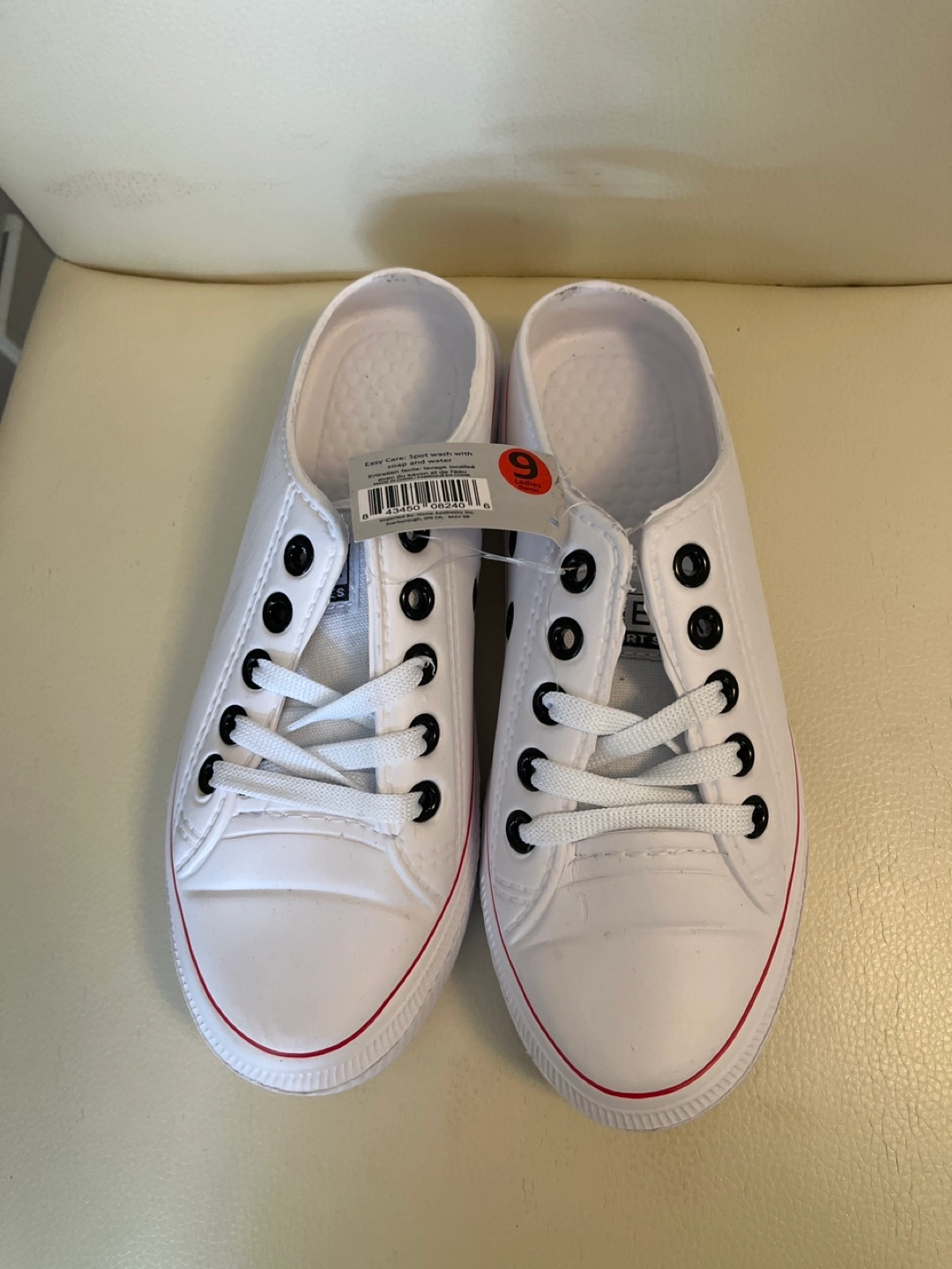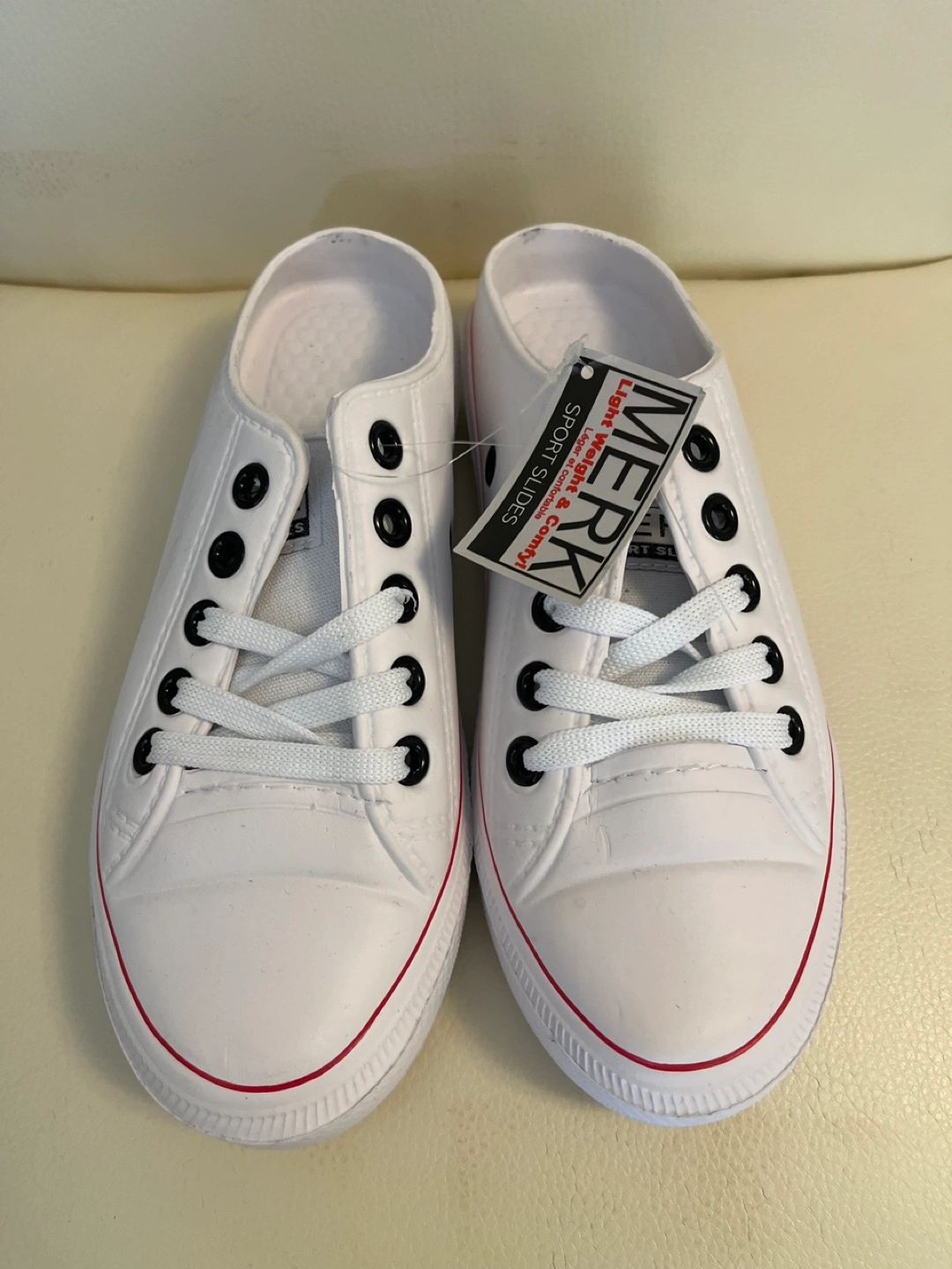 These MERK sport slides are lightweight and comfy! They feature a white colour and a red trim