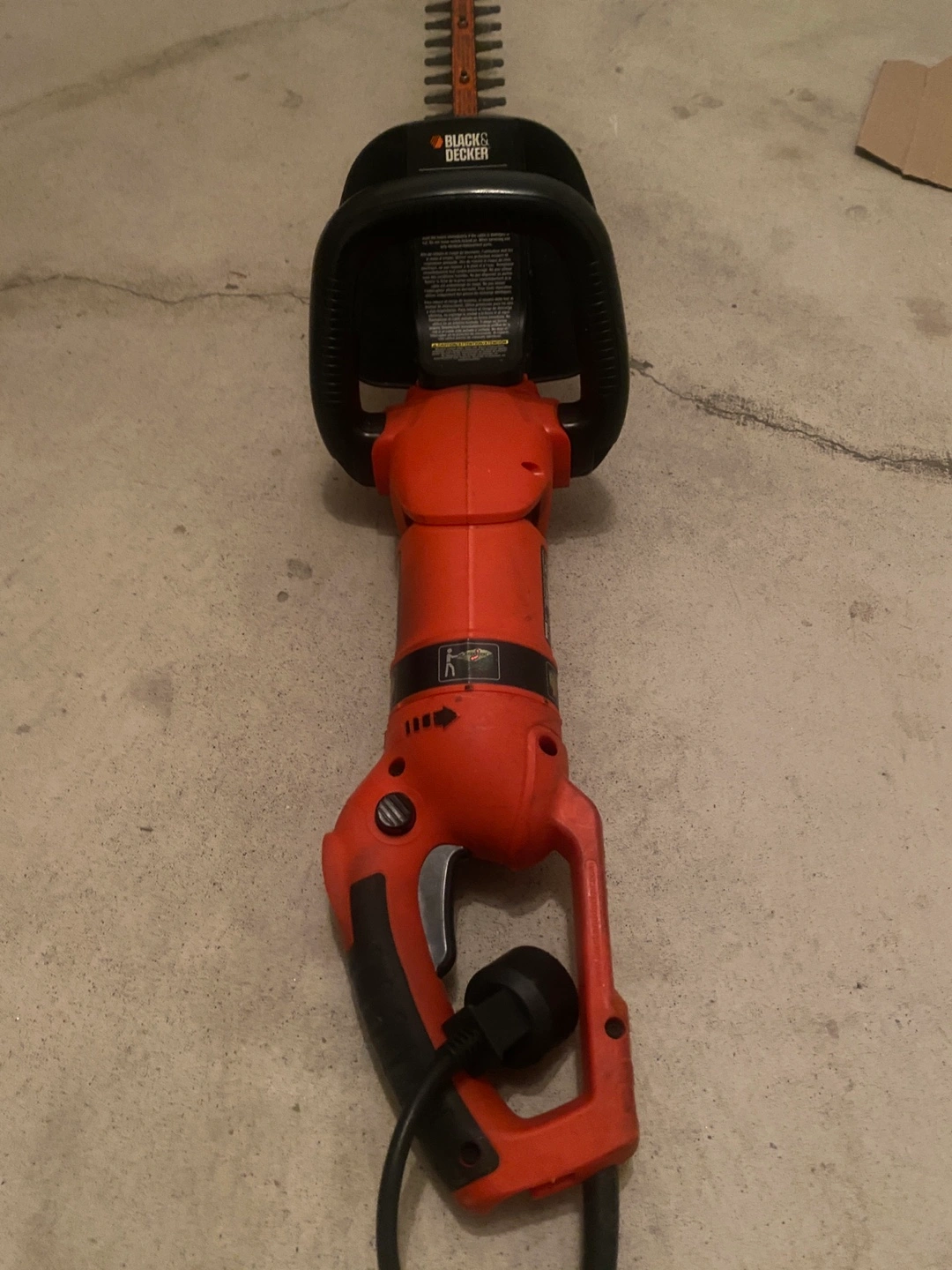 Selling this Black+Decker 24-inch Electric Hedge Trimmer with a rotating handle for parts.