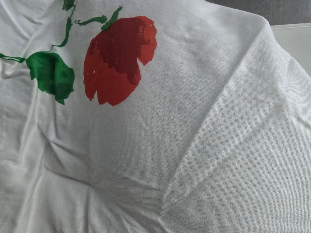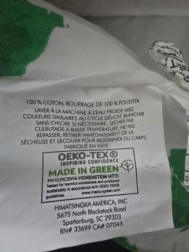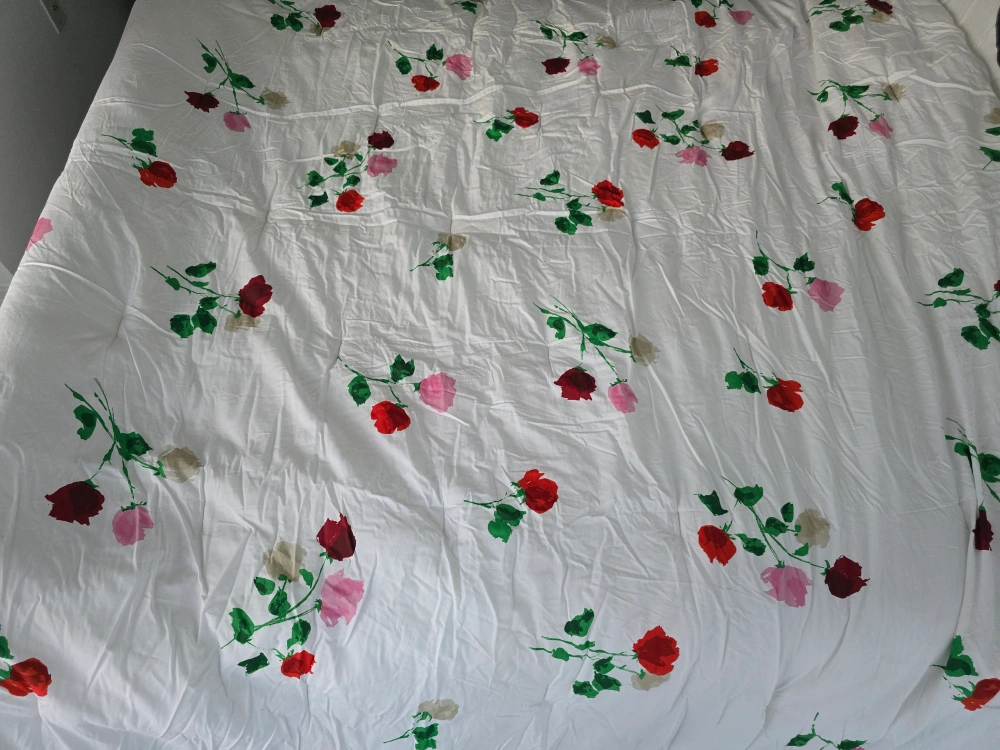 Full/Queen size comforter with a lovely floral pattern! It's made from 100% cotton with 100% polyester fill. Machine washable in cold water with similar colours. Tumble dry on low heat, and remove promptly to avoid wrinkles